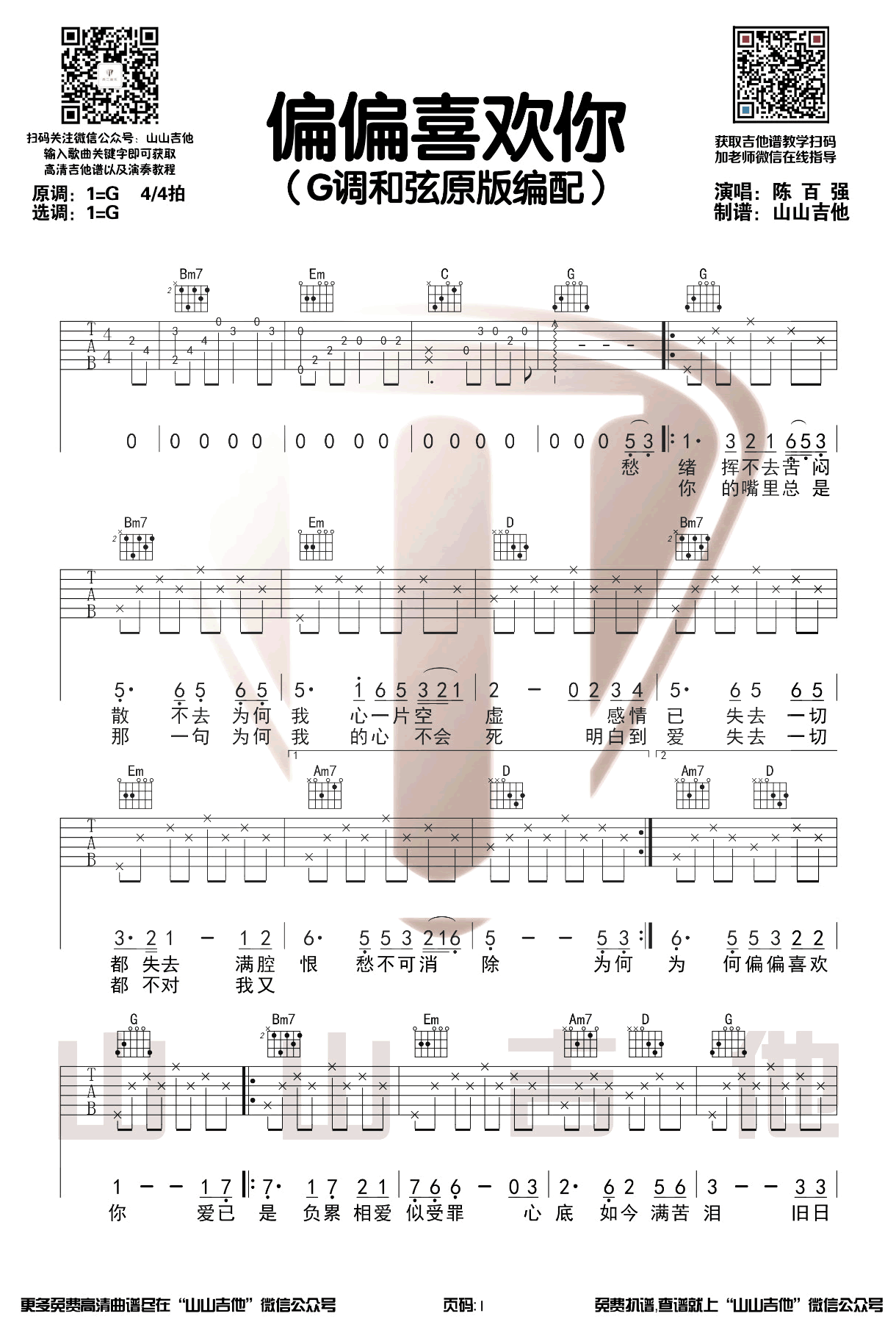 当前位置:琴谱网>吉他弹唱>偏偏喜欢你