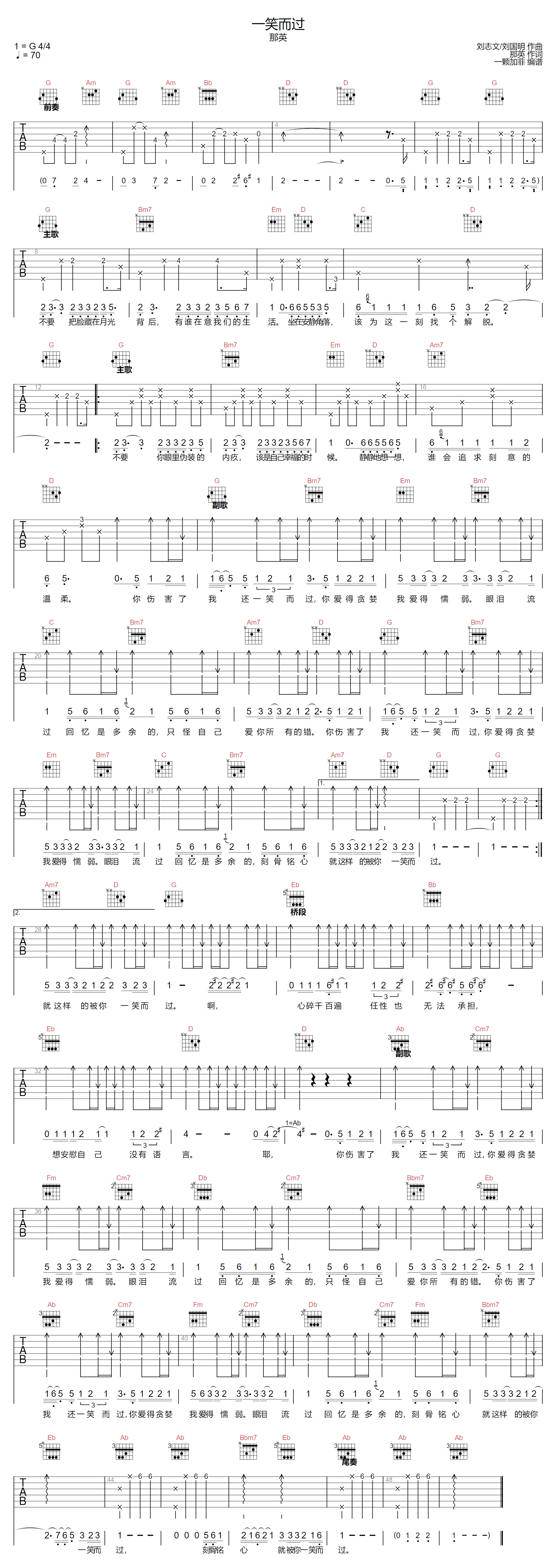 一笑而过吉他谱 - 那英 - G调吉他弹唱谱 - 原版
