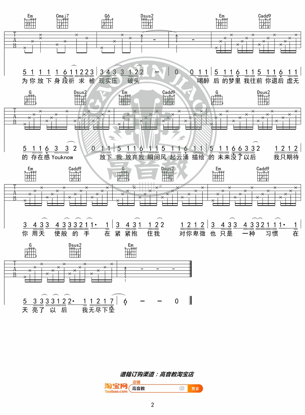 当前位置:琴谱网>吉他弹唱>下坠falling