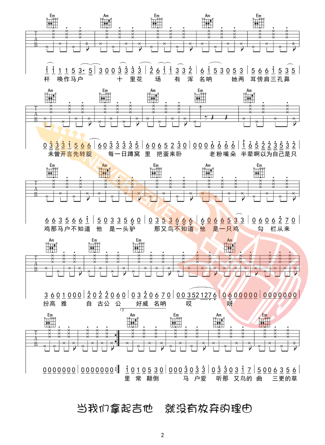 曲谱介绍: 刀郎演唱的一首歌曲,4/4拍的节奏,这首歌曲的原调为D调,这里曲谱采用了C调指法进行编配,演唱时夹变调夹2品可回到原调,也可根据个人实际嗓音情况选择。曲谱由琴谱网更新上传,来源于@革命吉他编配出品。这首歌无论从歌名到歌词,再到整个编曲、演唱风格,都极具个性化和神秘色彩,正因此,也留下了广阔的解读空间,激发了网友的想象力。