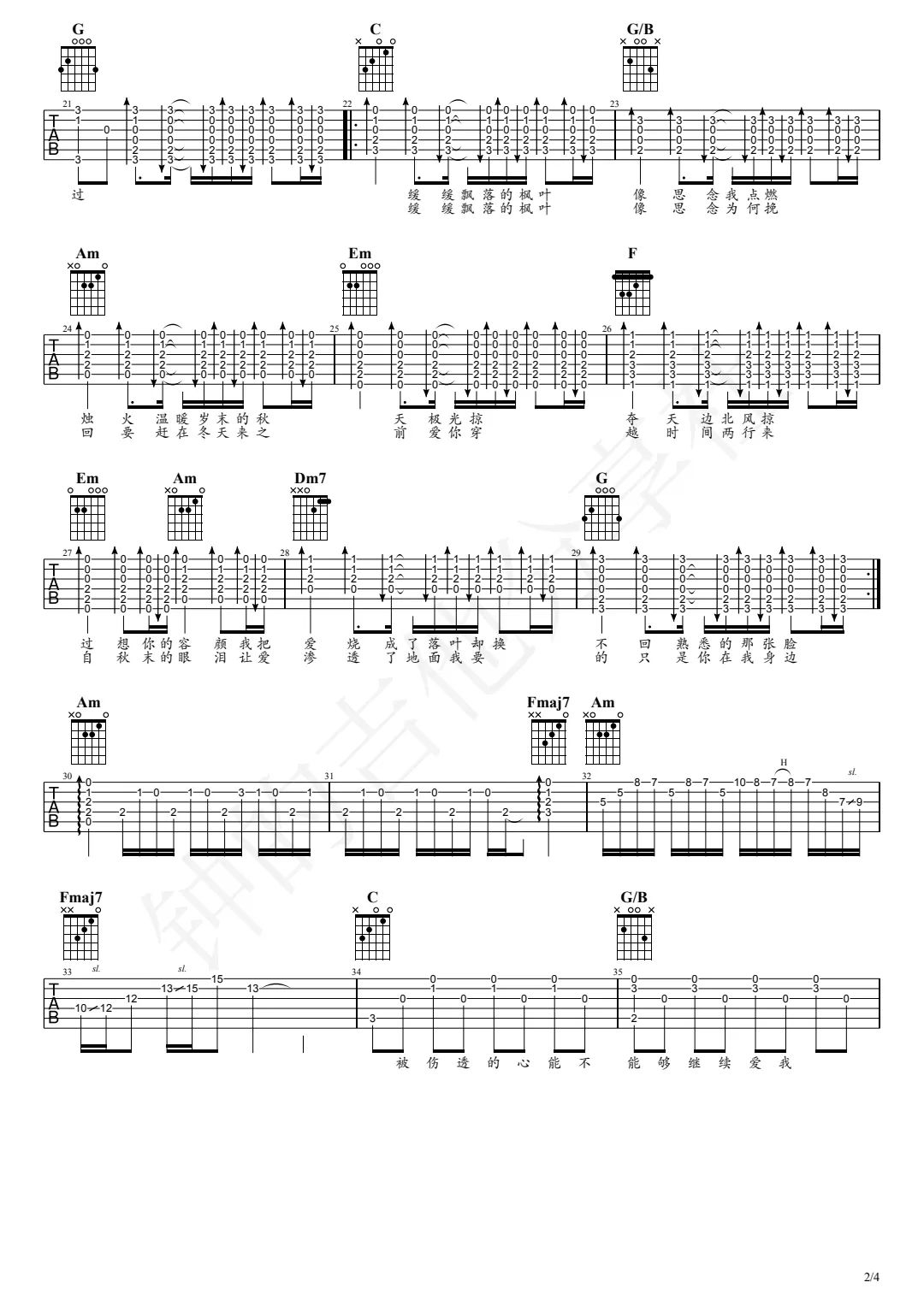 枫吉他谱 - 周杰伦 - 吉他独奏谱