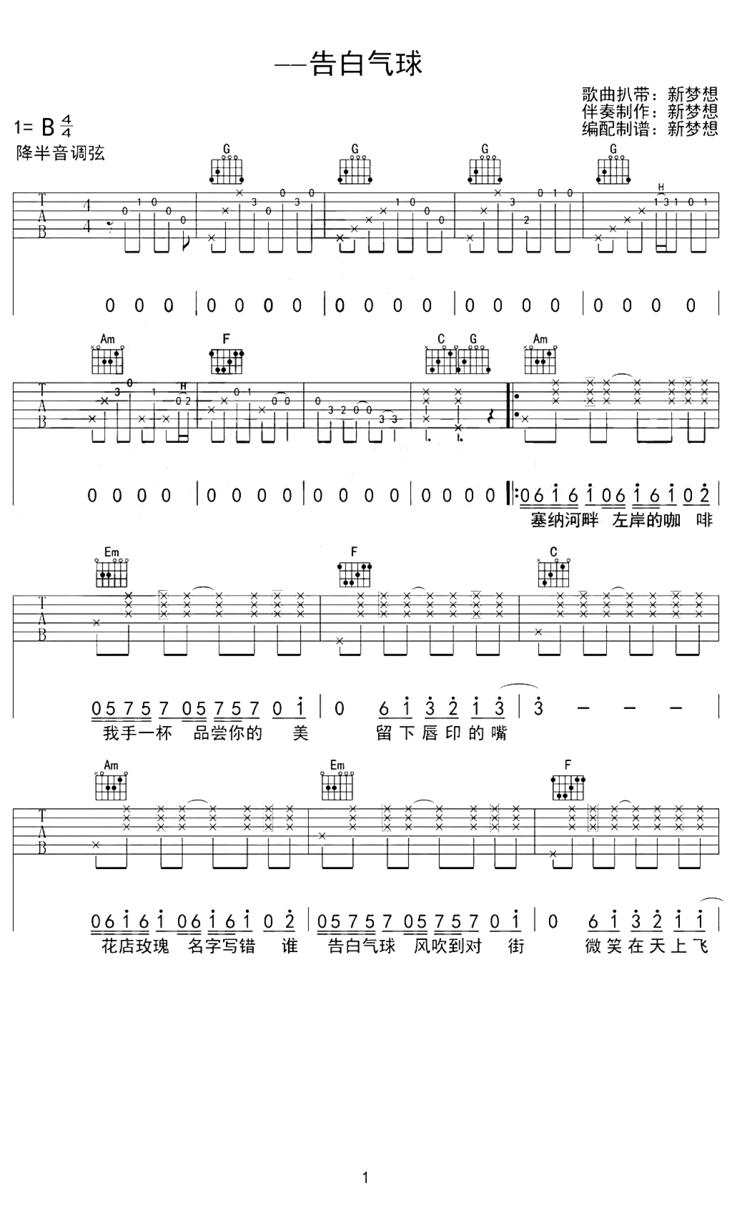 告白气球吉他谱 - 周杰伦 - 吉他弹唱谱