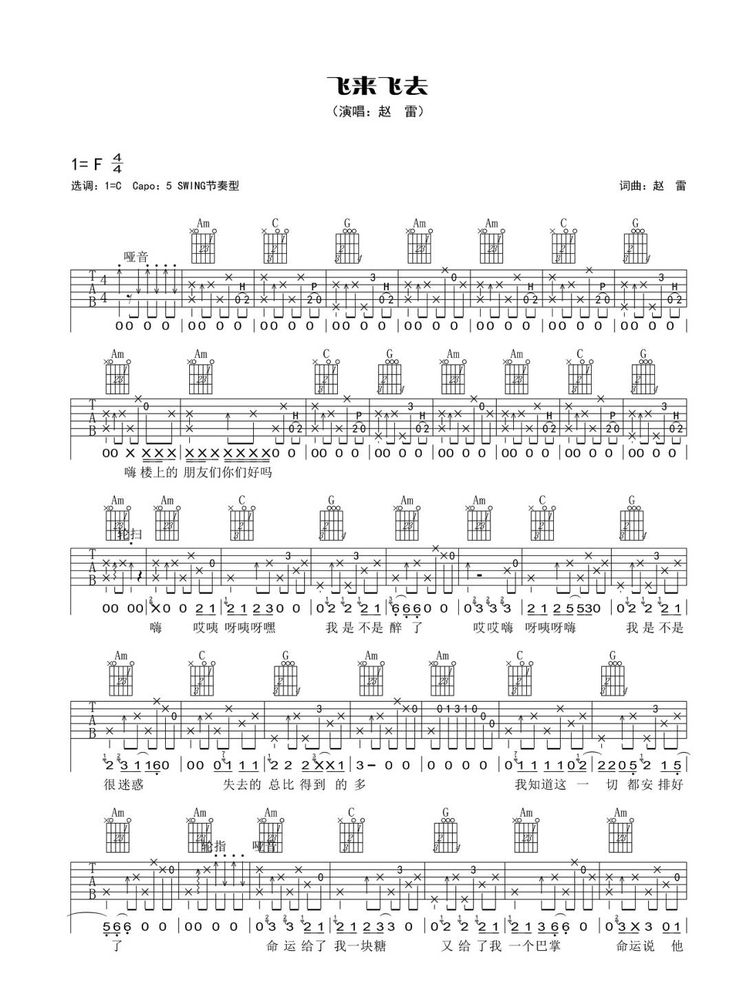 飞来飞去吉他谱 - 赵雷 - C调吉他弹唱谱 - 原版