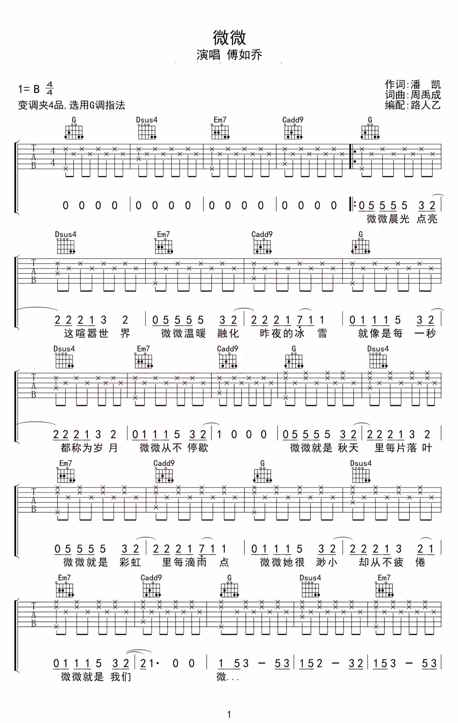 微微吉他谱 - 傅如乔 - G调吉他弹唱谱