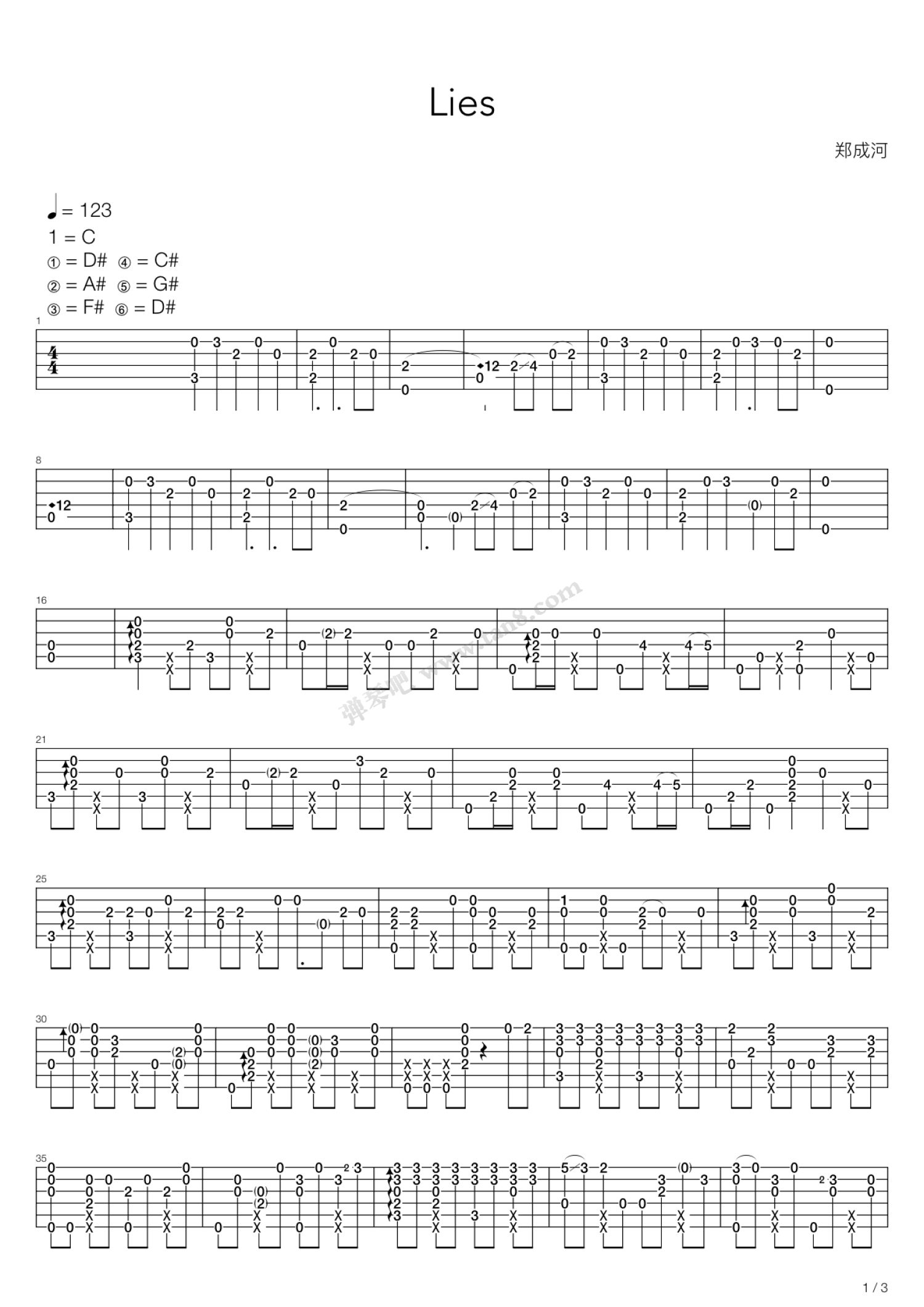 曲谱介绍: 郑成河《lies》吉他谱_吉他弹唱谱