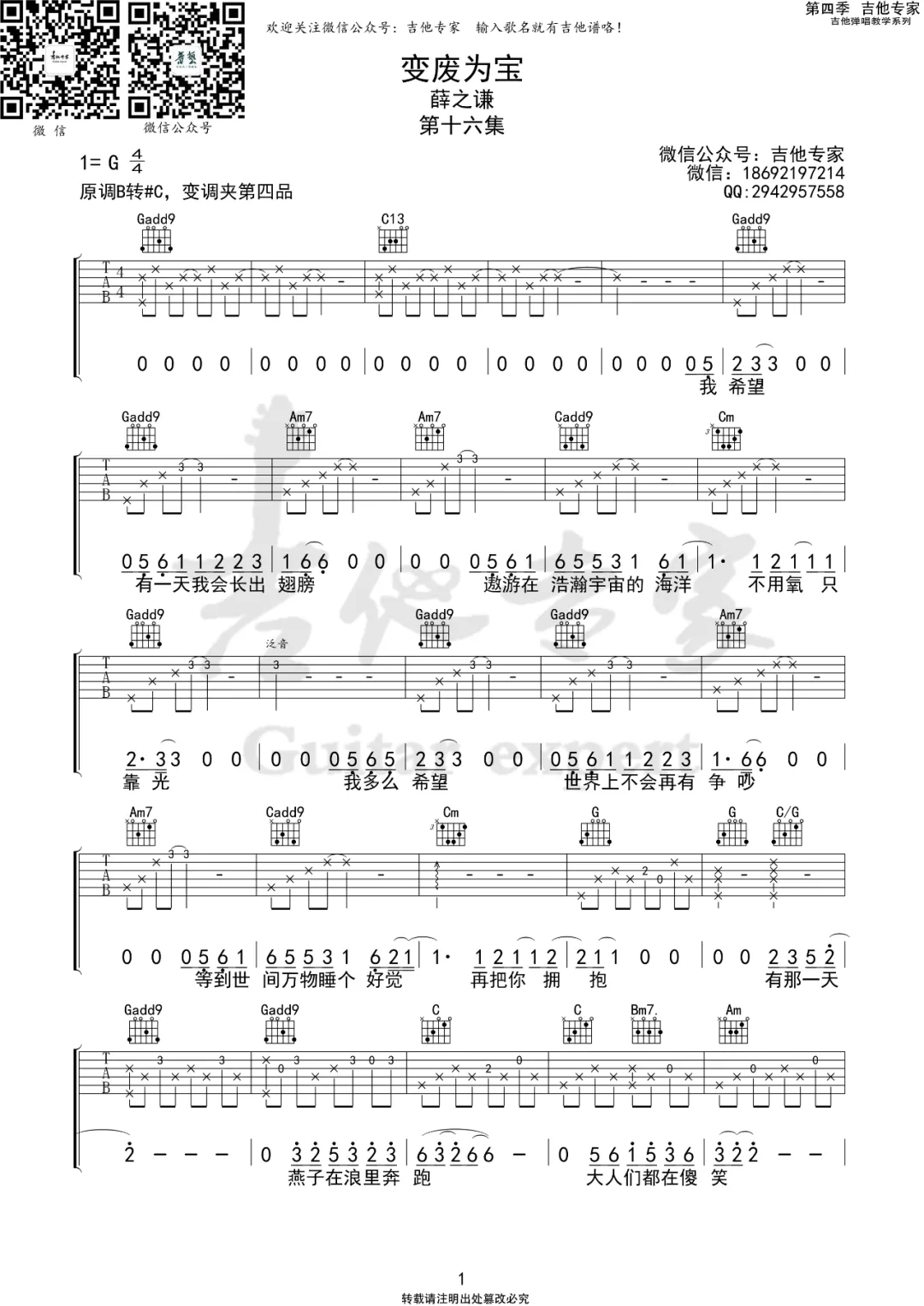 变废为宝吉他谱 - 薛之谦 - G调吉他弹唱谱 - 原版