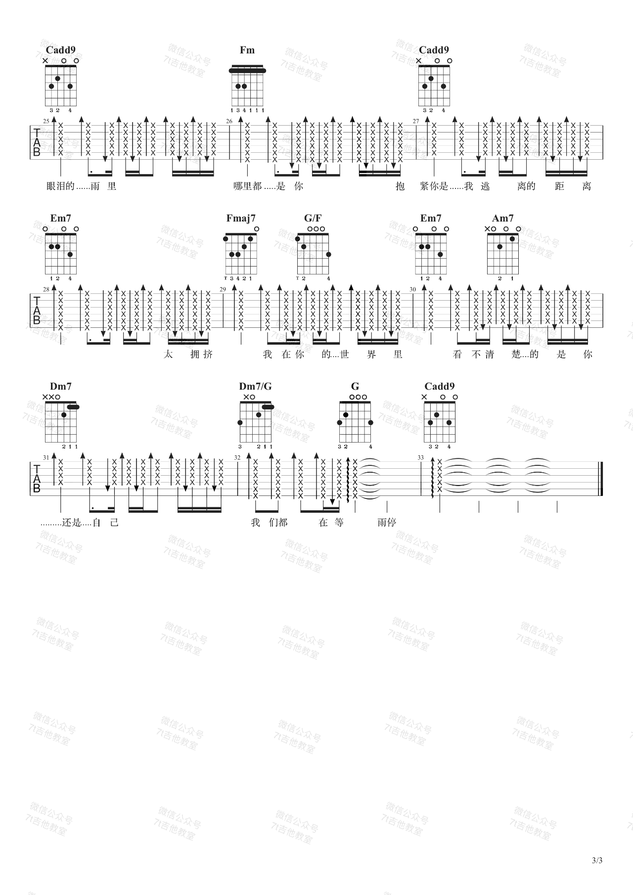 曲谱介绍: 周杰伦演唱的一首歌曲,4/4拍的节奏,这首歌曲的原调为F调,这里曲谱采用了C调指法进行编配,演唱时夹变调夹5品可回到原调,也可根据个人实际嗓音情况选择。曲谱由琴谱网更新上传,来源于@7T吉他教室编配出品。这首歌融合了周杰伦高亢的声线与细腻的情感,引子即用弦乐开启大器篇章,副歌与主歌的断层即是爆发的导火线,一旦开始就没有落下的高音融汇在均一平衡的摇滚氛围中,使人得以匀速消化且无紧迫与不适。