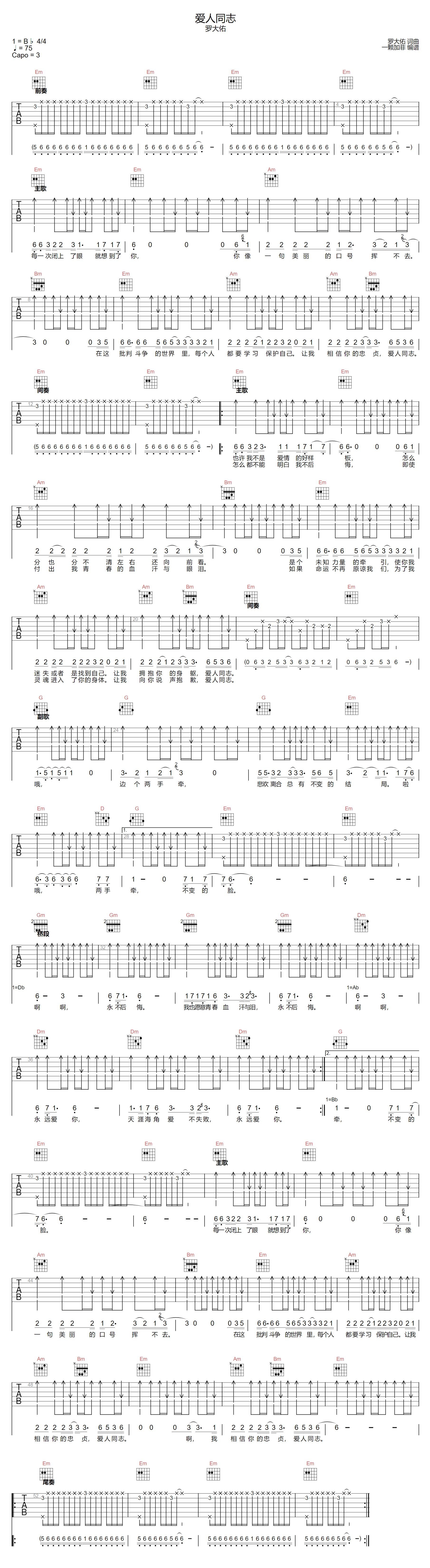 当前位置:琴谱网>吉他弹唱>爱人同志