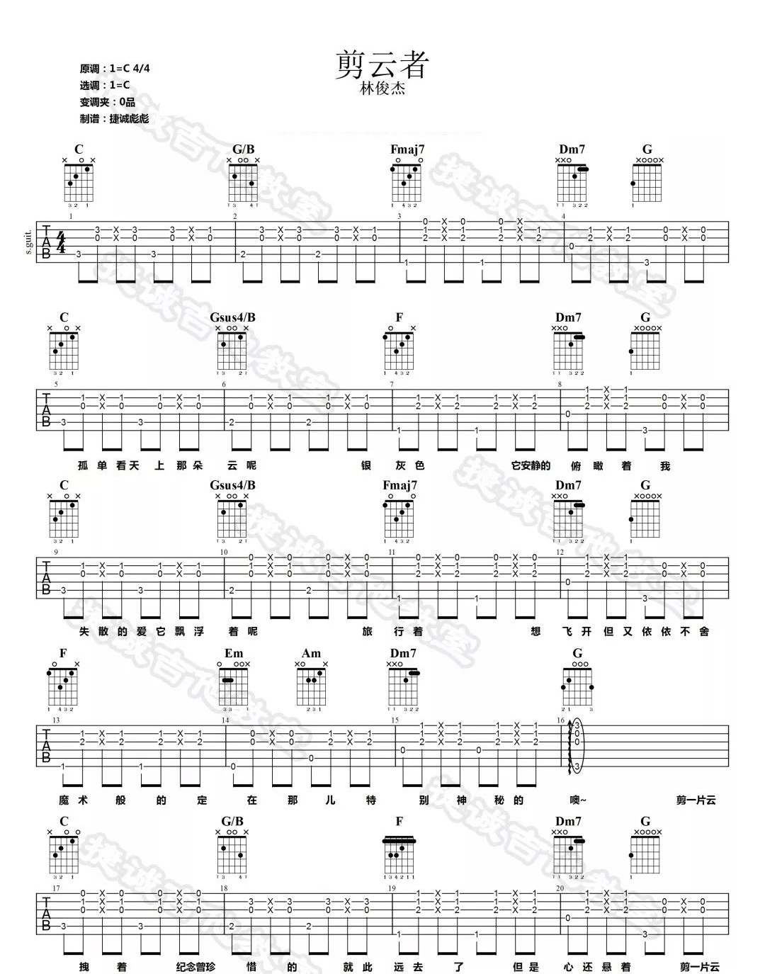 剪云者吉他谱 - 林俊杰 - C调吉他弹唱谱 - 原版