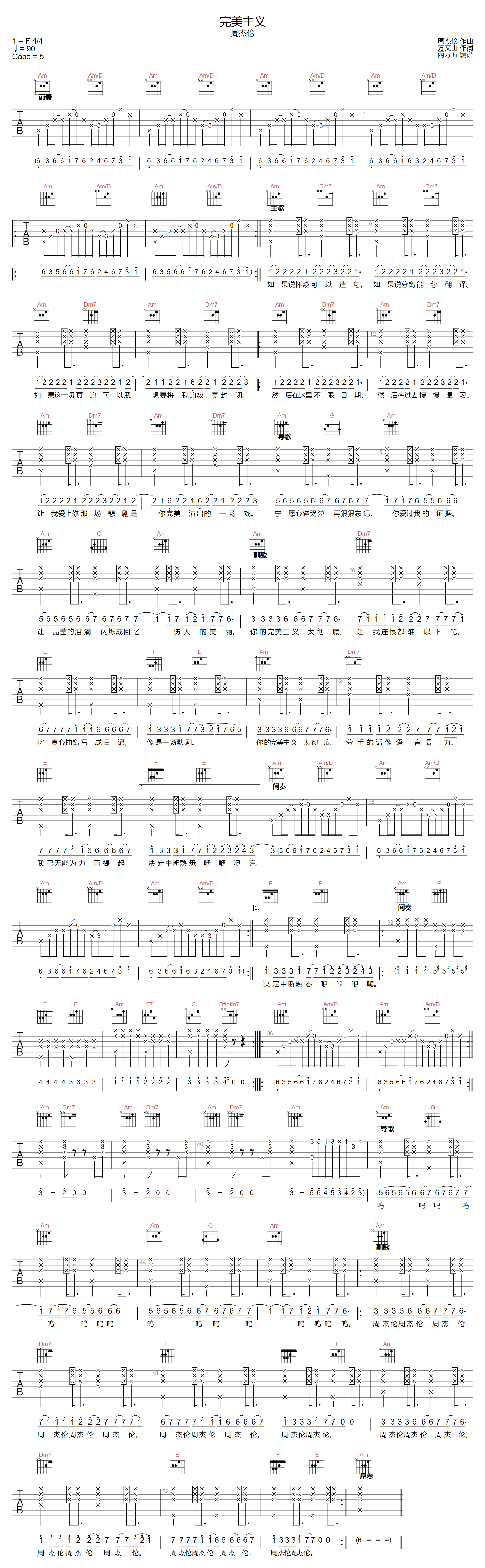 完美主义吉他谱 - 周杰伦 - C调吉他弹唱谱 - 原版