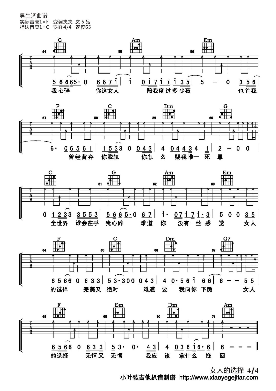 当前位置:琴谱网>吉他弹唱>女人的选择