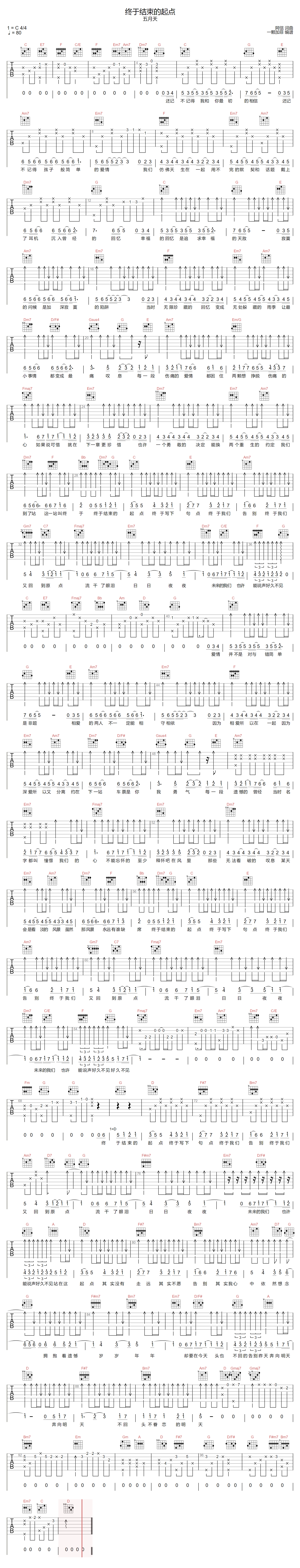 终于结束的起点吉他谱 - 五月天 - C调吉他弹唱谱 - 原版