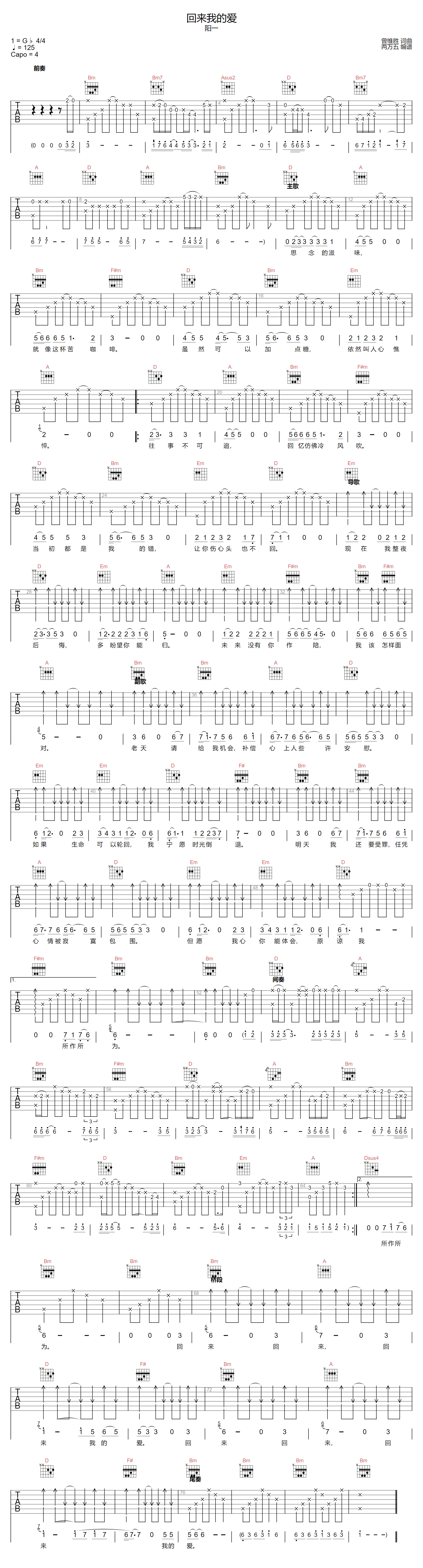 当前位置:琴谱网>吉他弹唱>回来我的爱