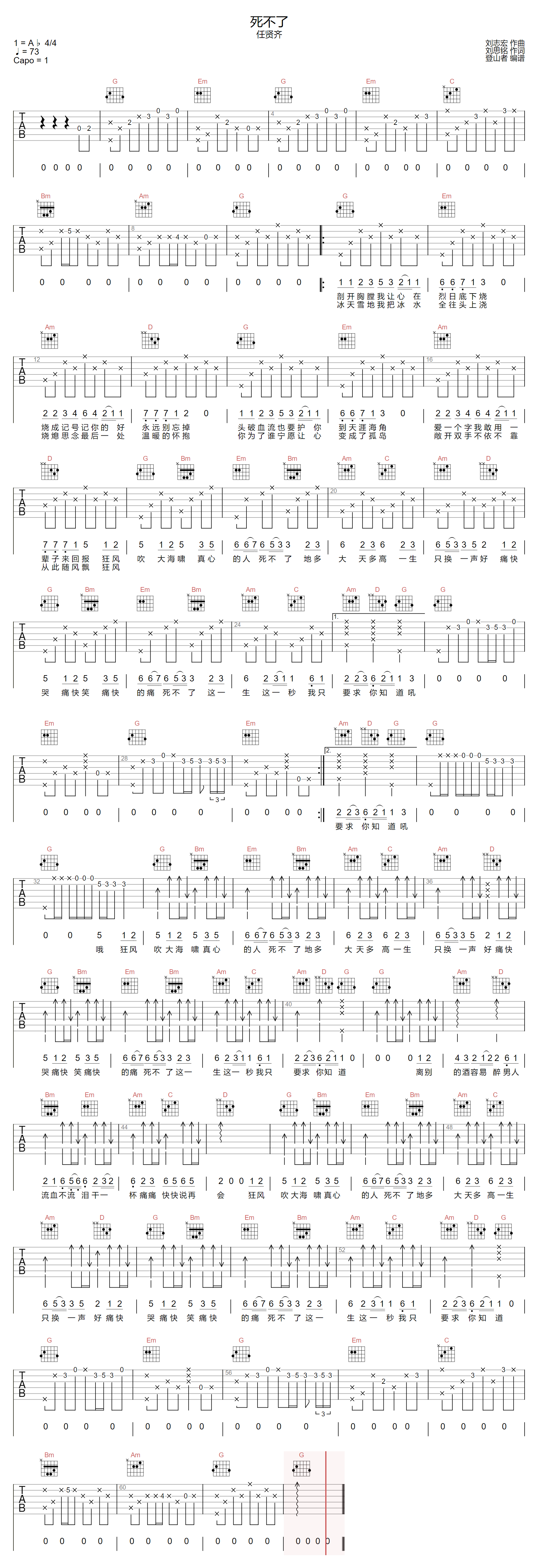 死不了吉他谱 - 任贤齐 - G调吉他弹唱谱 - 原版