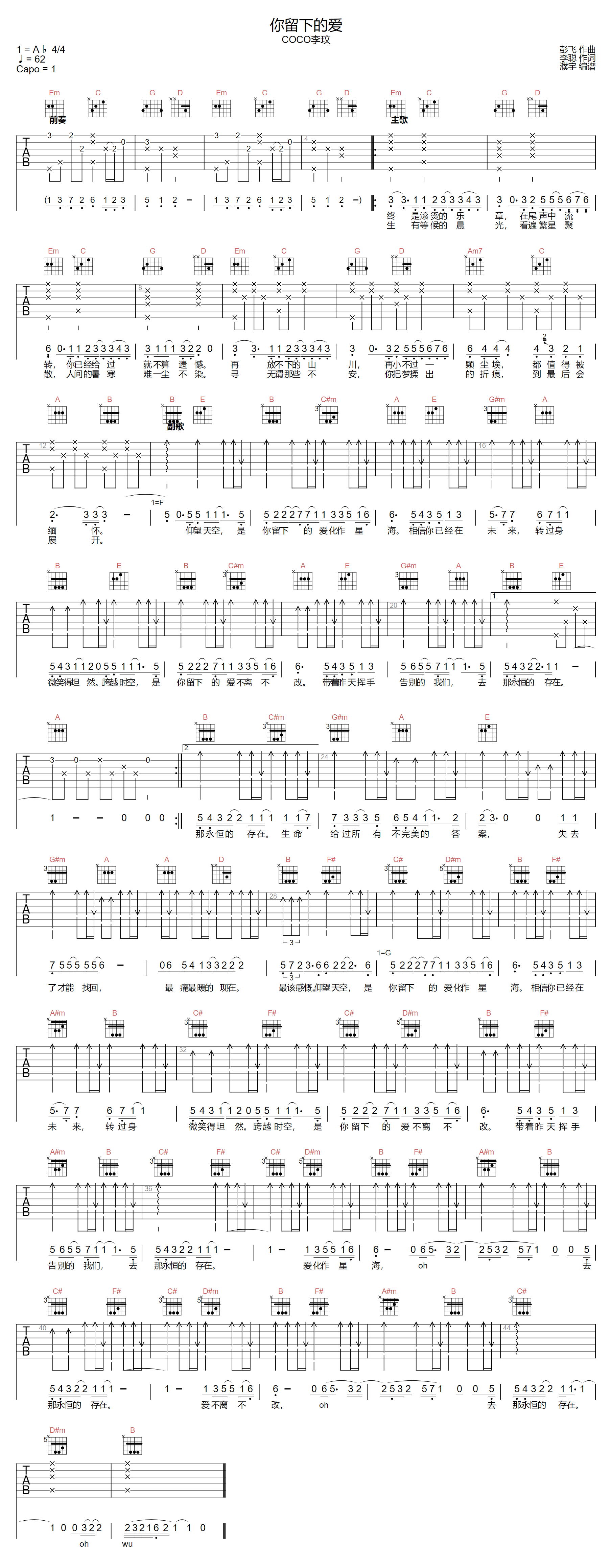 当前位置:琴谱网>吉他弹唱>你留下的爱