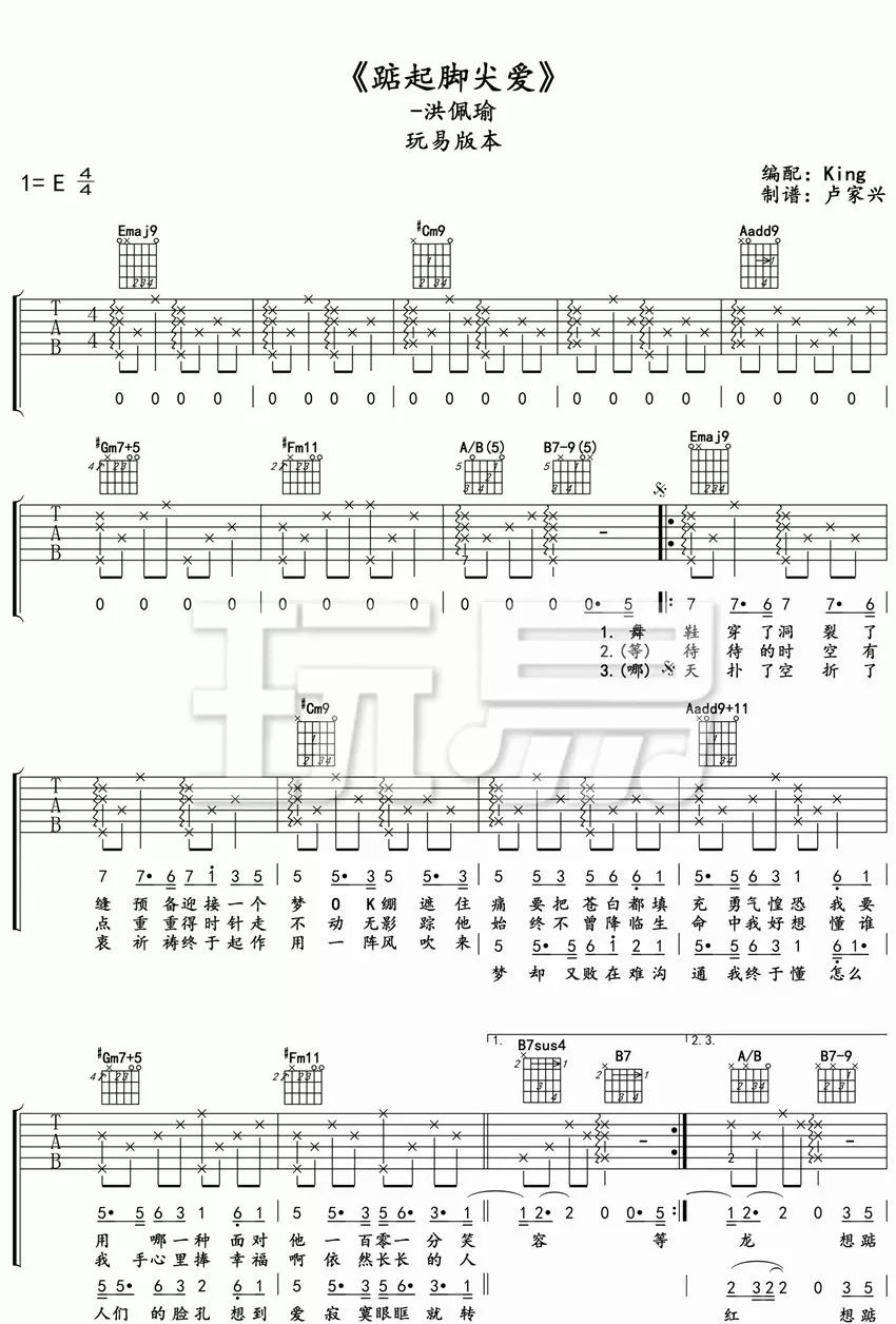 踮起脚尖爱吉他谱 - 洪佩瑜 - E调吉他弹唱谱 - 原版