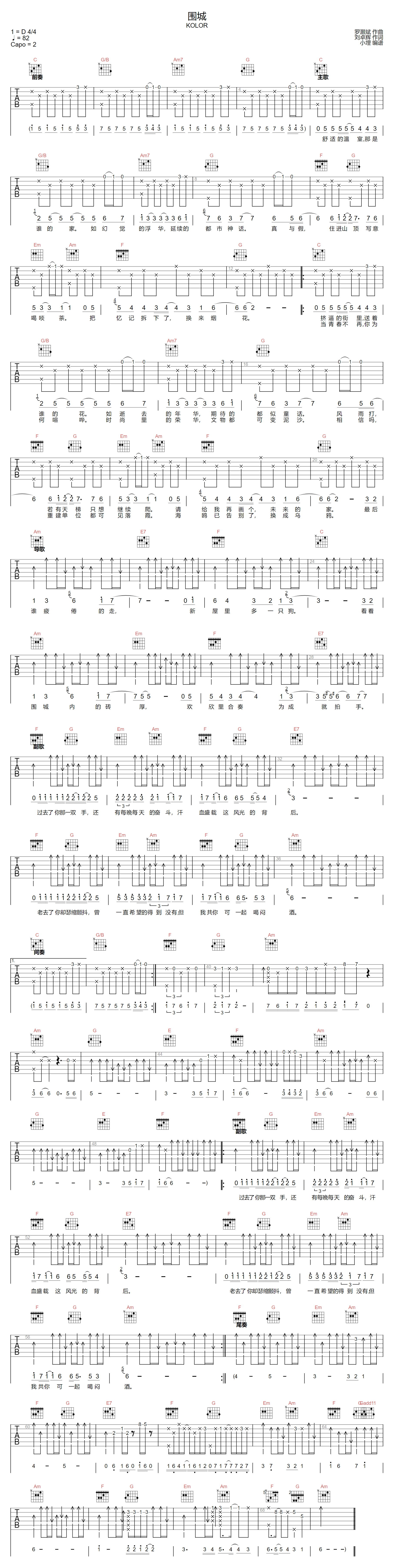 围城吉他谱 - Kolor - C调吉他弹唱谱 - 原版