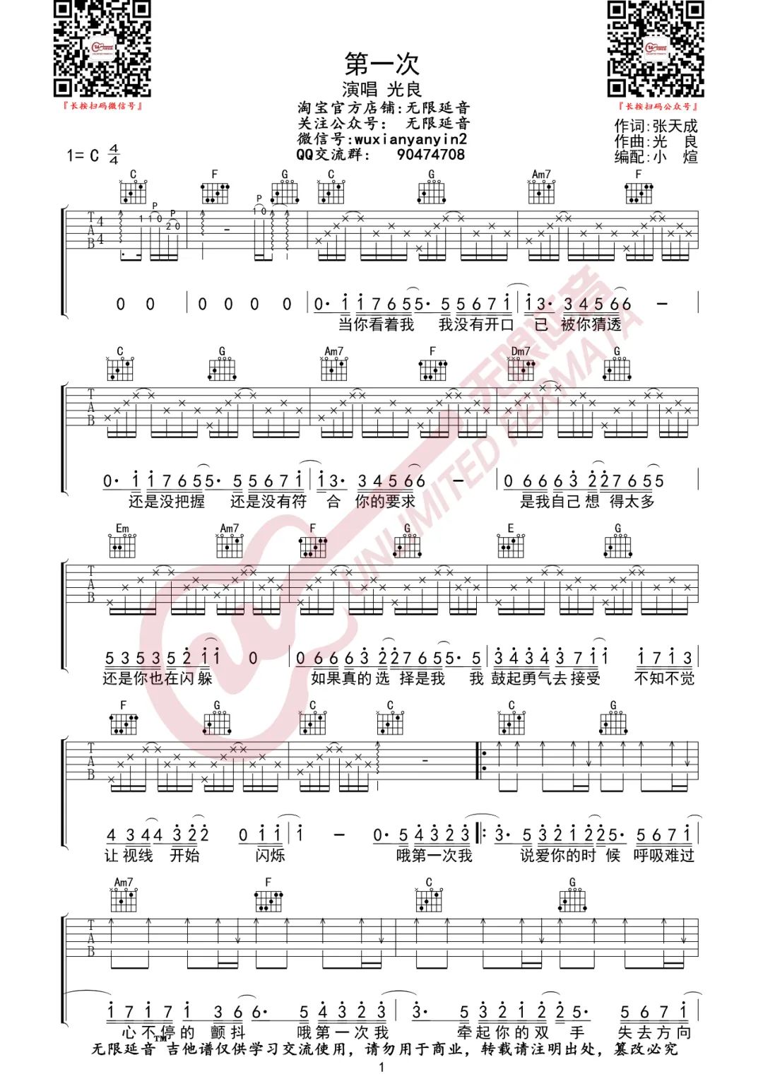 曲谱介绍: 光良演唱的一首歌曲,4/4拍的节奏,这首歌曲的原调为C调,这里曲谱采用了C调指法进行编配,演唱时可不夹变调夹,曲谱由琴谱网更新上传,来源于@无限延音编配出品。初恋是什么,是第一个为之真正动心的人,第一次感到心与心的陪伴,第一次相信全世界的事情都变得不足为外人道也,而是一遍遍地对遇到的每一个人讲述着她,那是自己最珍贵最自豪的回忆。念念不忘,必有回响。
