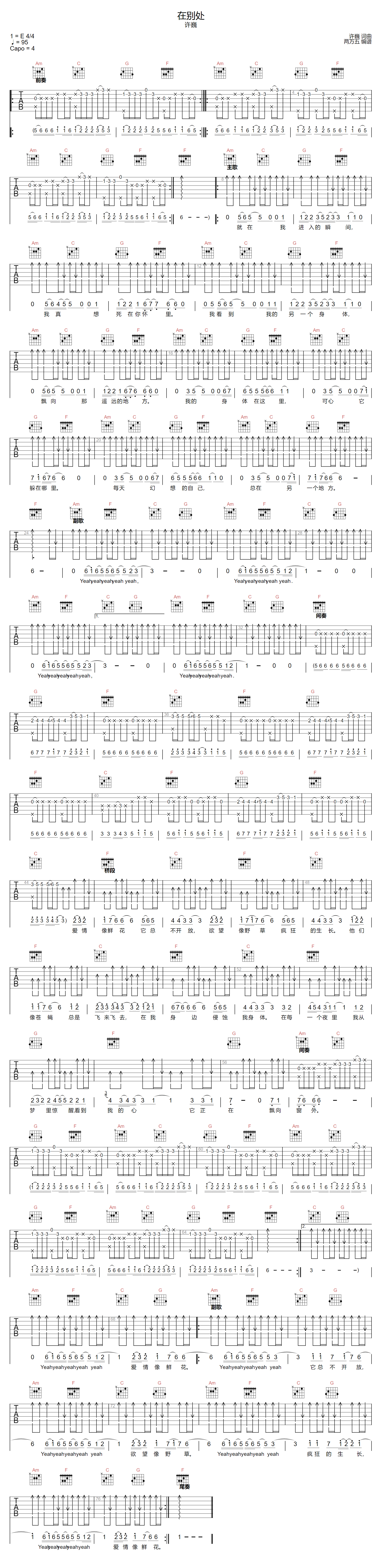 在别处吉他谱 - 许巍 - C调吉他弹唱谱 - 原版