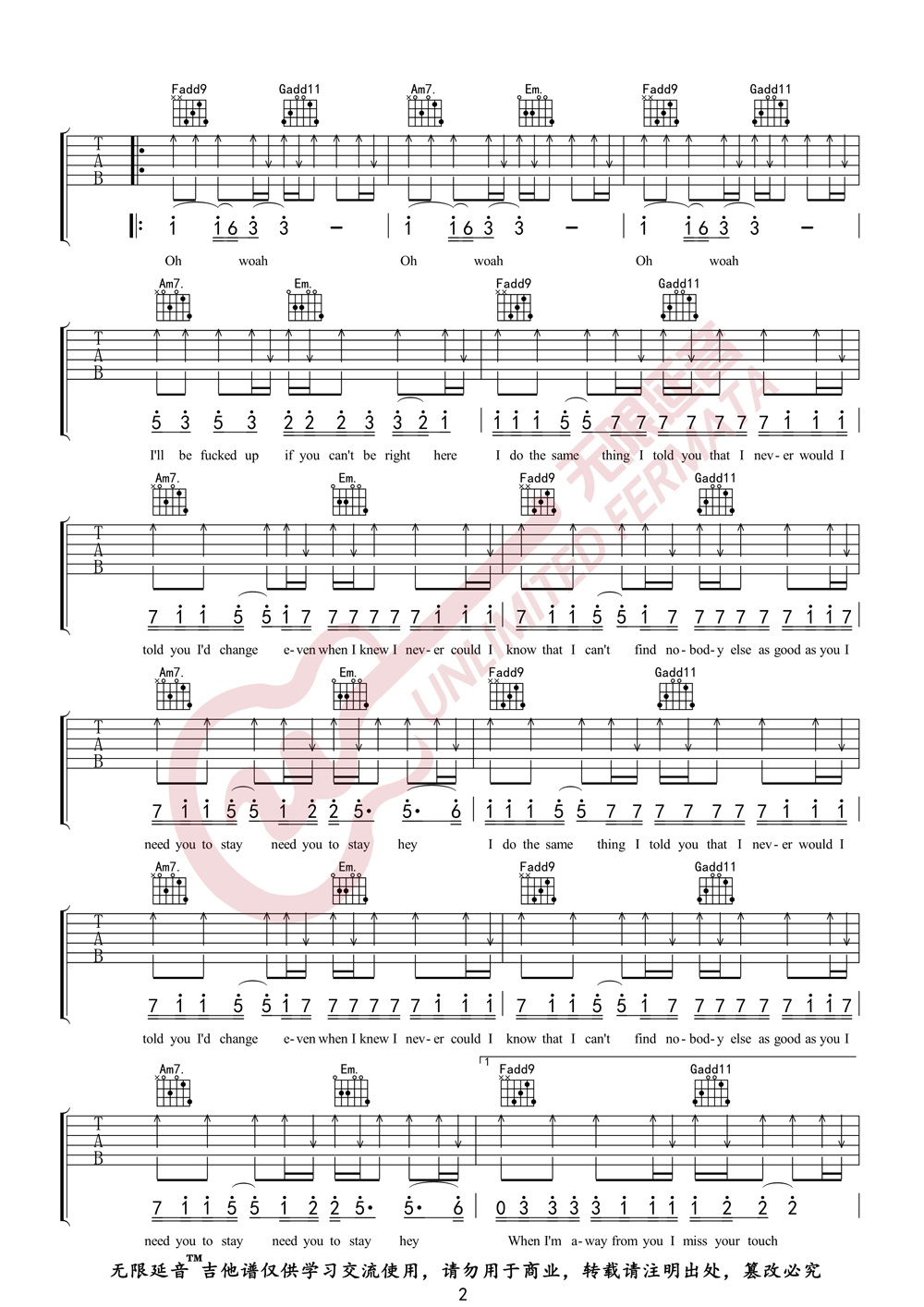 曲谱介绍: Justin-Bieber演唱的一首歌曲,4/4拍的节奏,这首歌曲的原调为降D调,这里曲谱采用了C调指法进行编配,演唱时夹变调夹1品可回到原调,也可根据个人实际嗓音情况选择。曲谱由琴谱网更新上传,来源于@无限延音编配出品。这首歌超有记忆点的节奏,嗨到爆的气氛,比伯的柔和细腻配上the kid laroi磁性动感,就像是叛逆少年最柔软的告白。