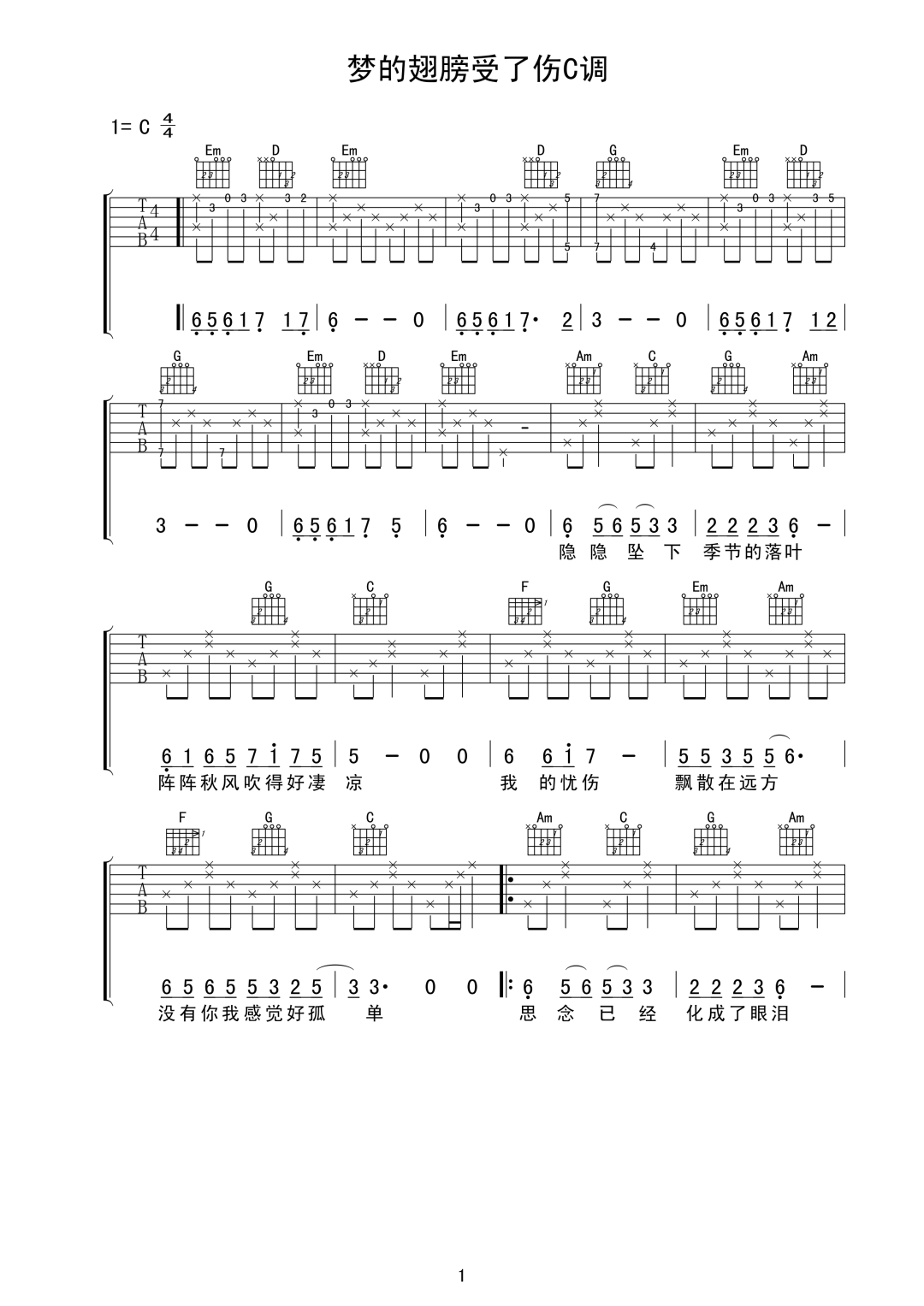 当前位置:琴谱网>吉他弹唱>梦的翅膀受了伤