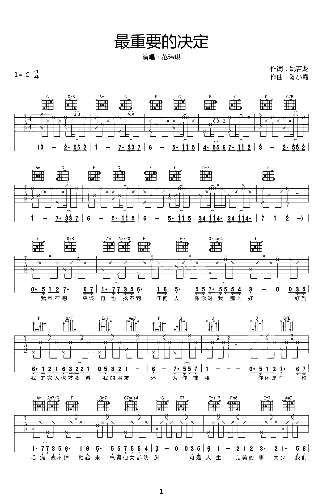 当前位置:琴谱网>吉他弹唱>最重要的决定