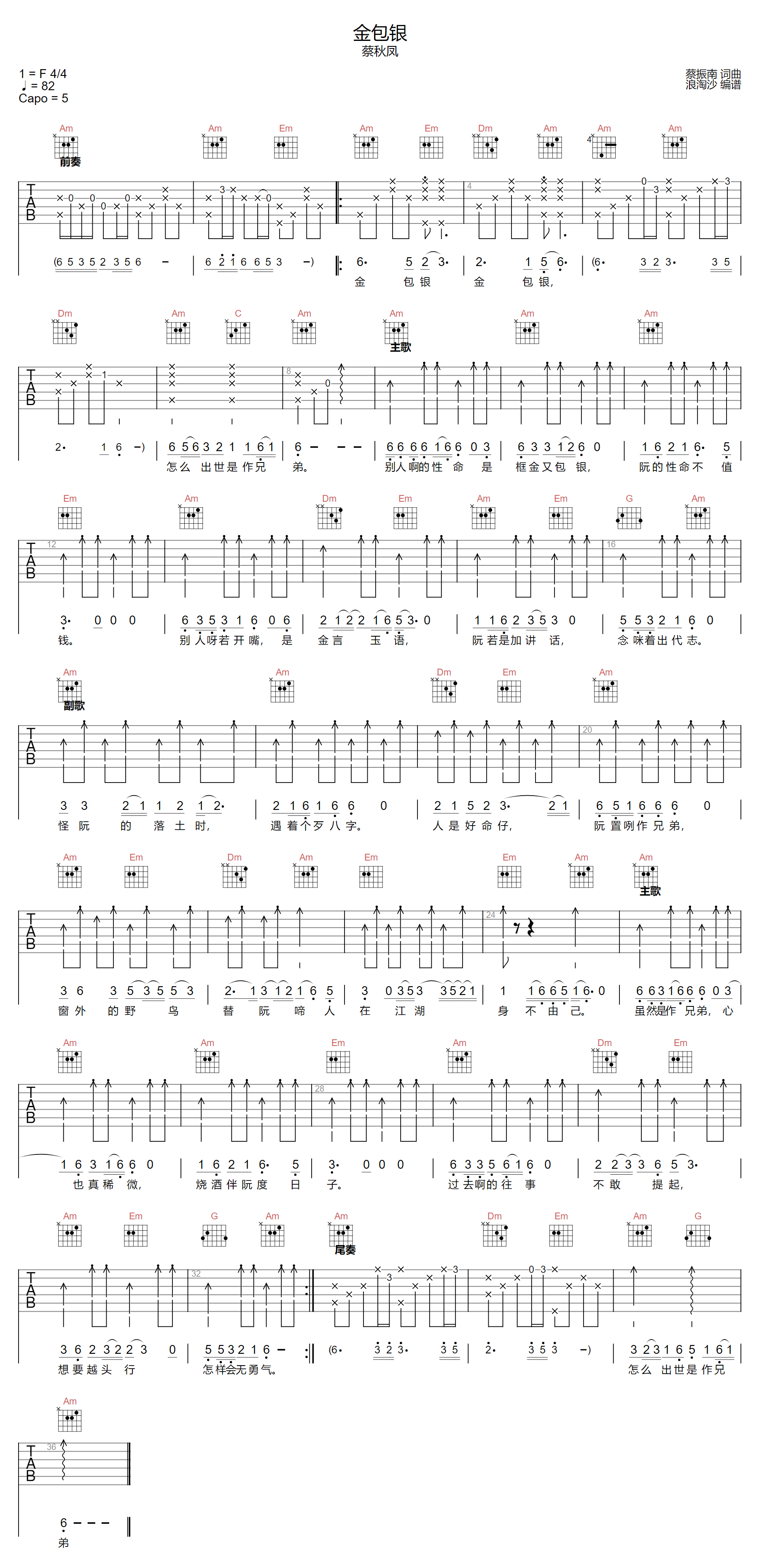 金包银吉他谱 - 蔡秋凤 - C调吉他弹唱谱 - 原版