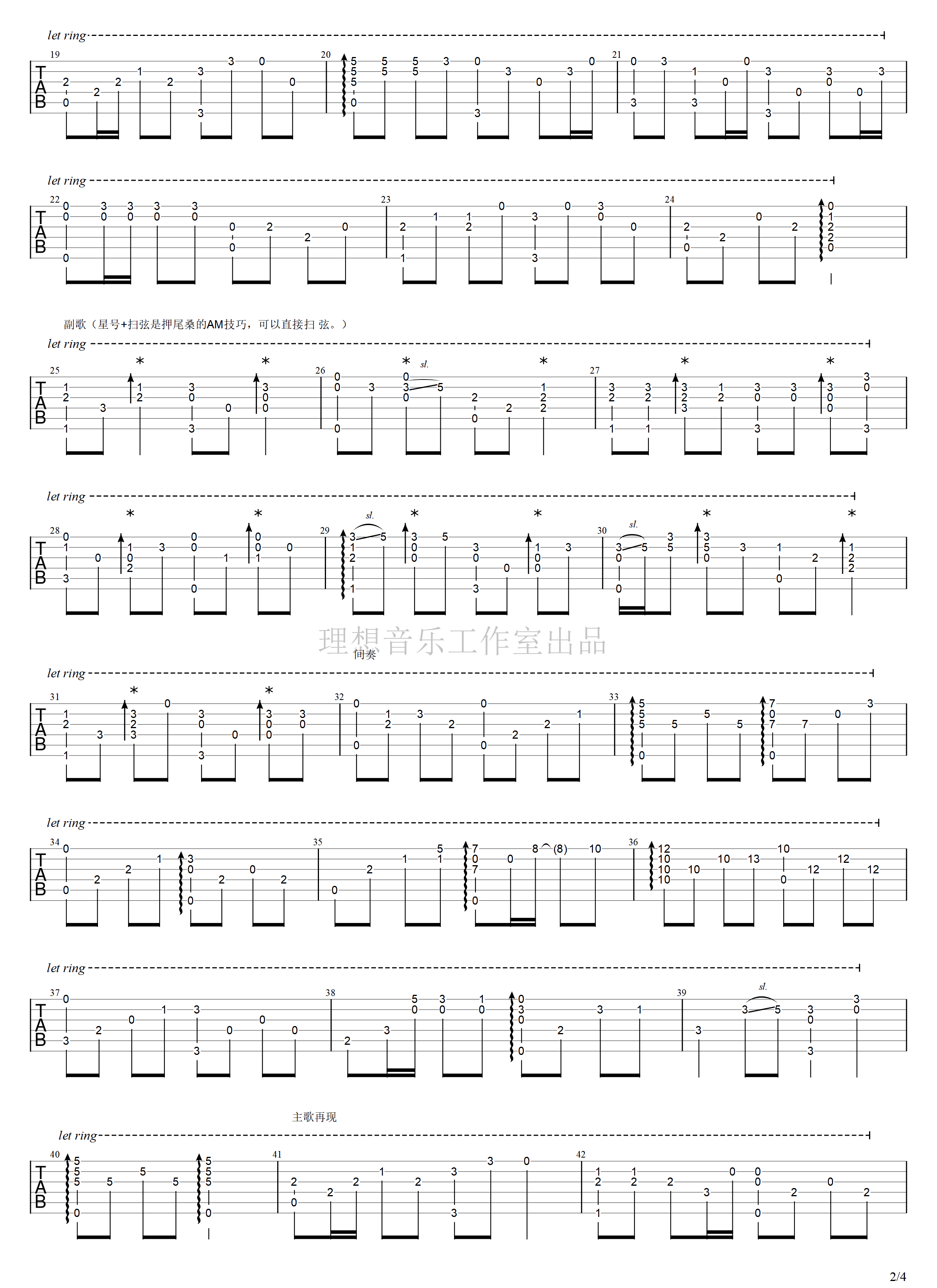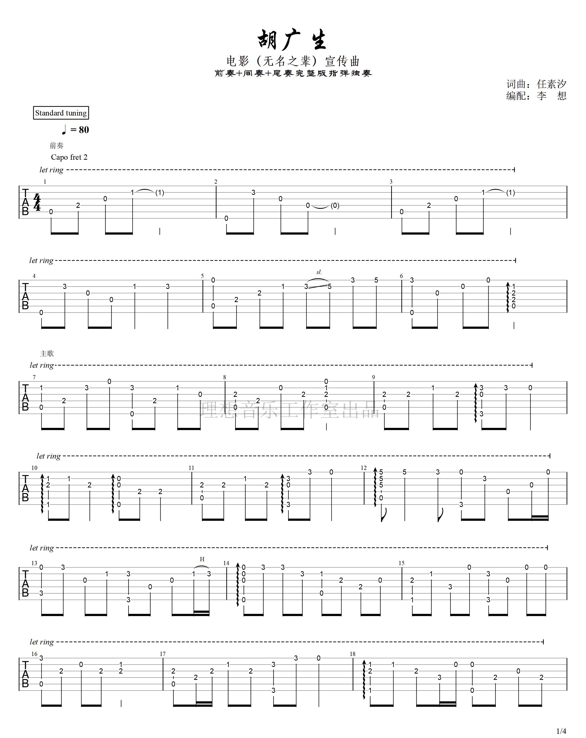 胡广生吉他谱 - 任素汐 - 吉他独奏谱