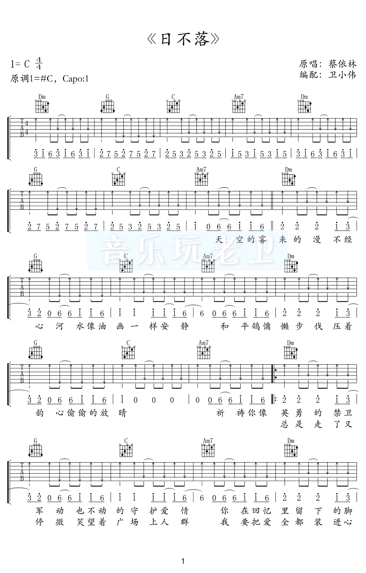 日不落吉他谱 - 蔡依林 - C调吉他弹唱谱