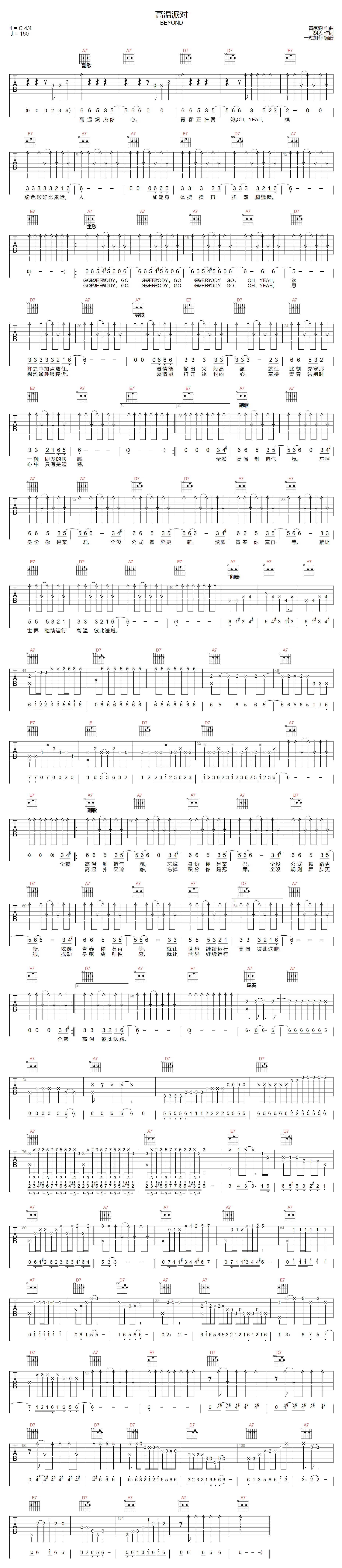 高温派对吉他谱 - Beyond - C调吉他弹唱谱 - 原版