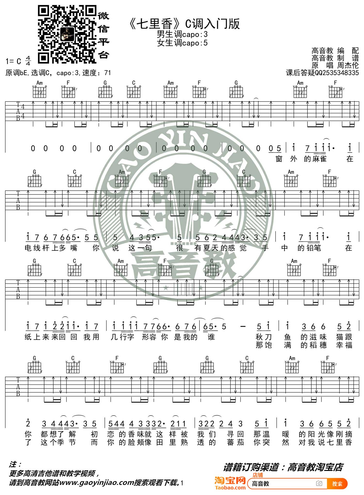 七里香吉他谱 - 周杰伦 - C调吉他弹唱谱