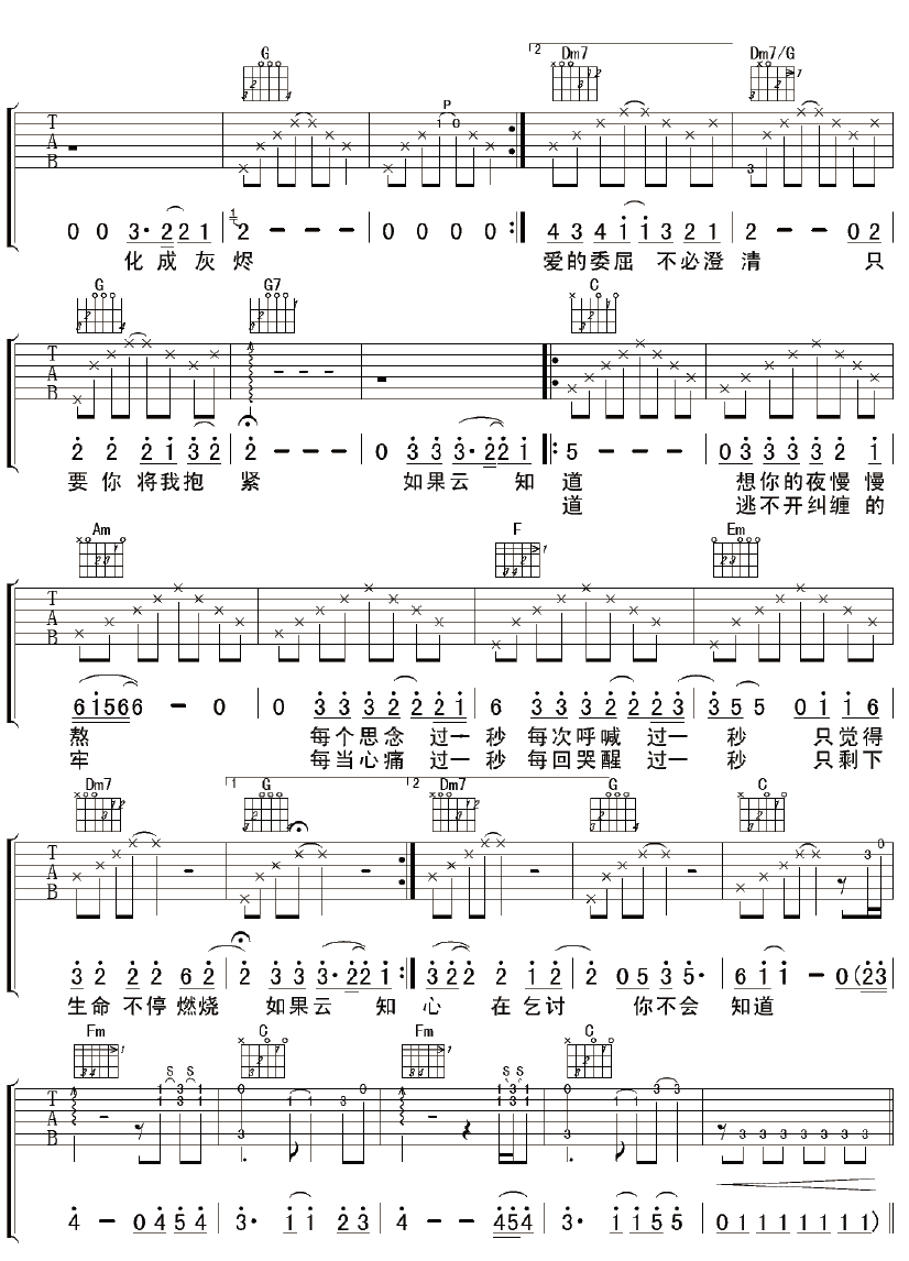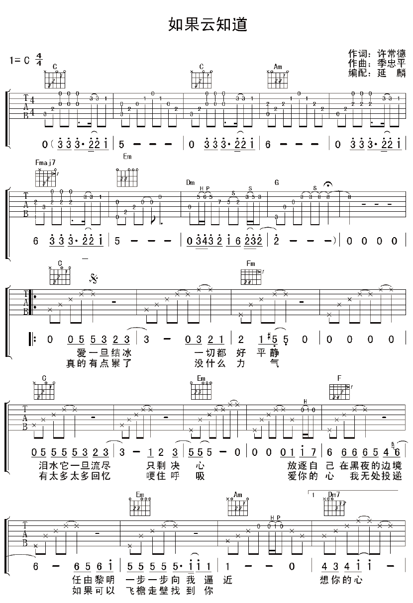 当前位置:琴谱网>吉他弹唱>如果云知道