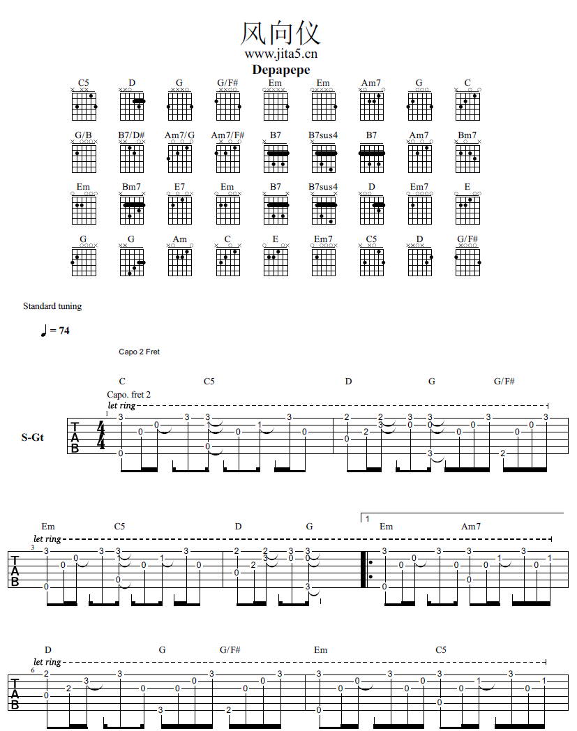 风向仪吉他谱 - Depapepe - 吉他独奏谱