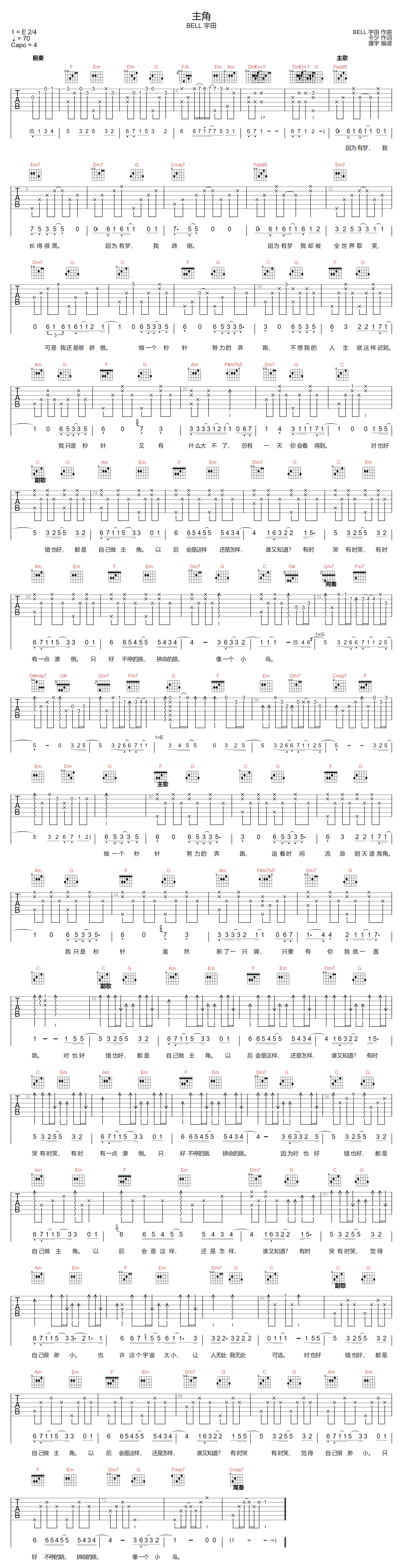 主角吉他谱 - BELL宇田 - C调吉他弹唱谱 - 原版