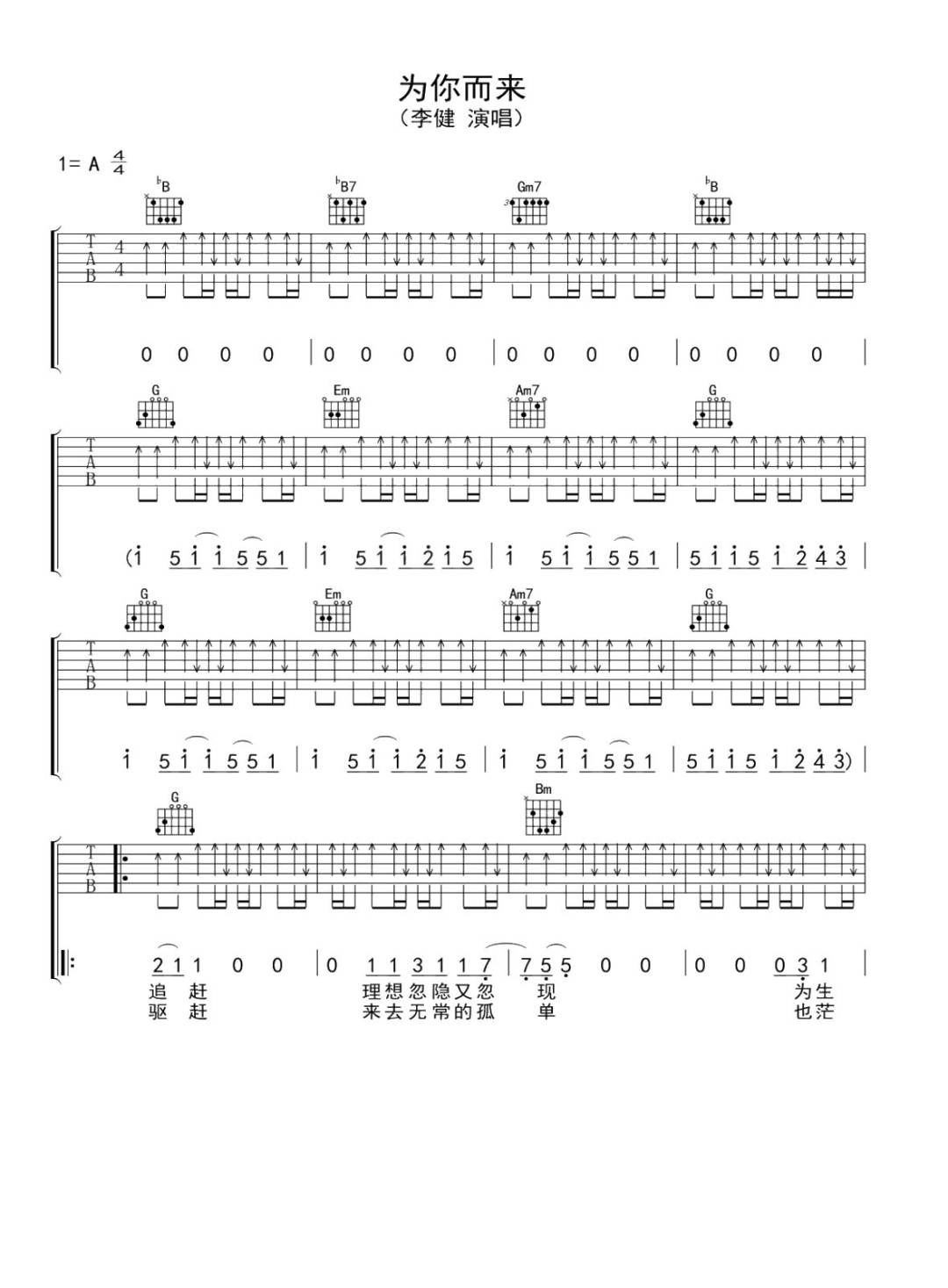 为你而来吉他谱 - 李健 - G调吉他弹唱谱