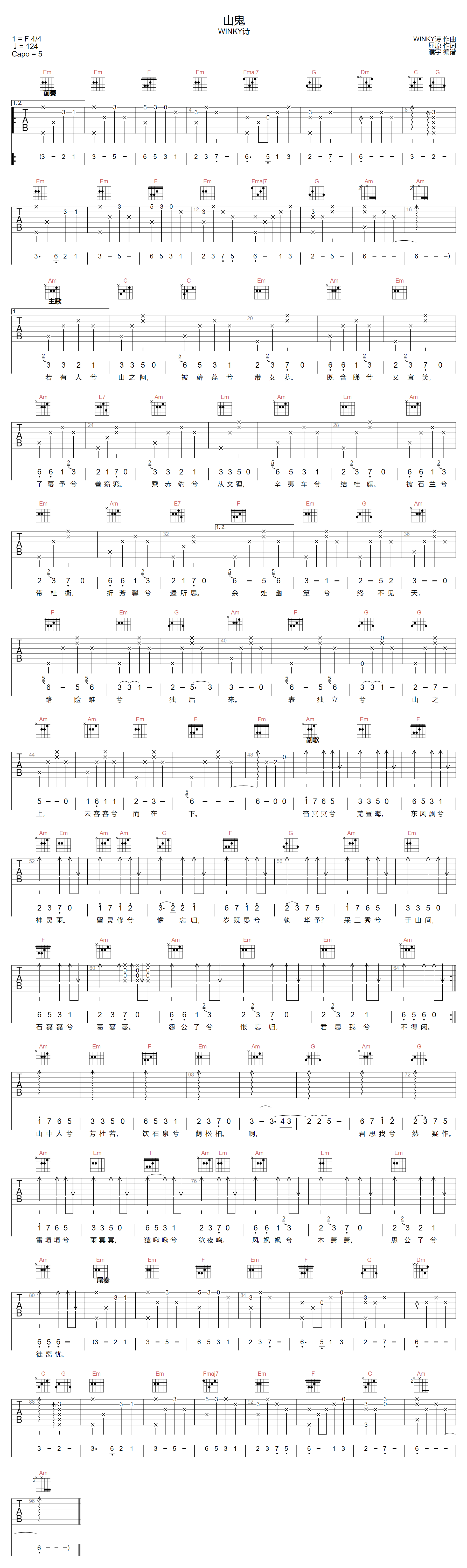 山鬼吉他谱 - WINKY诗 - C调吉他弹唱谱 - 原版