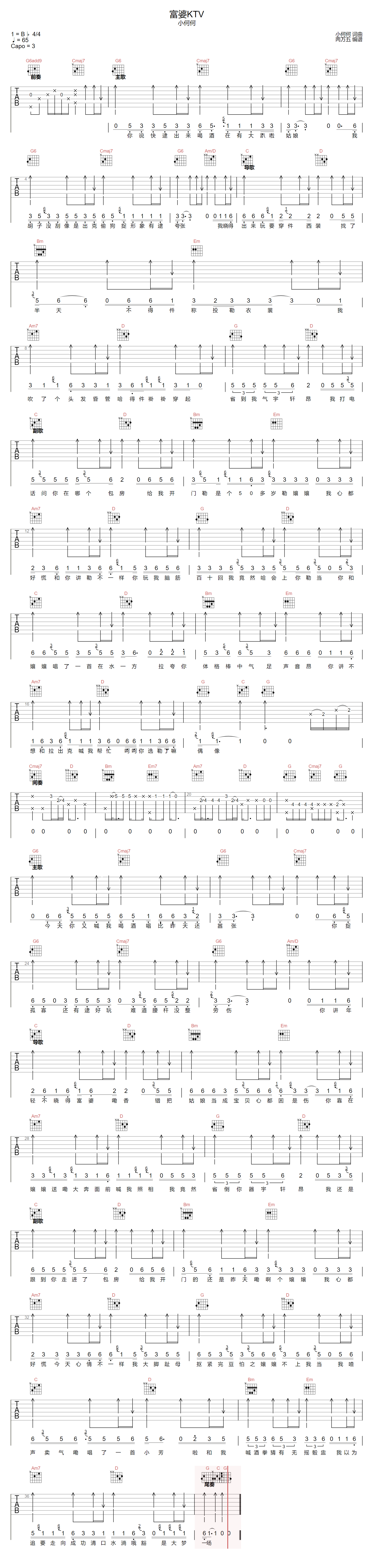 富婆KTV吉他谱 - 小何何 - G调吉他弹唱谱