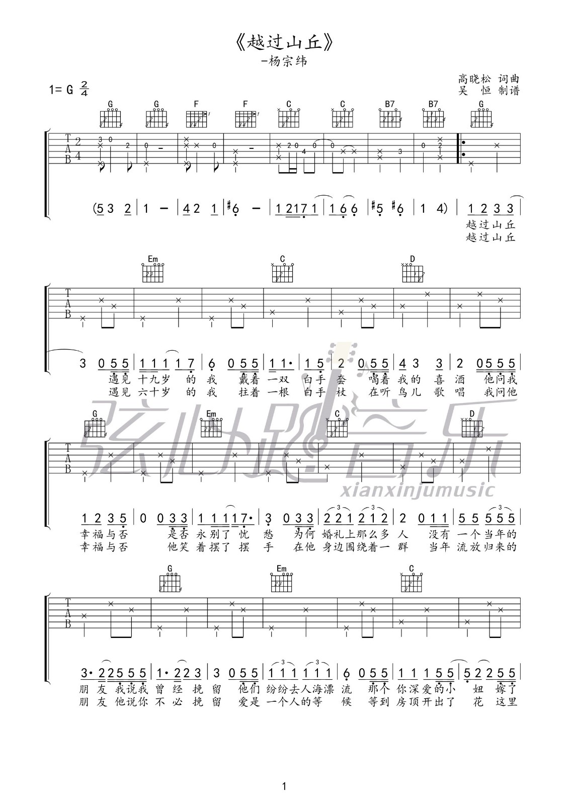 越过山丘吉他谱 - 杨宗纬 - G调吉他弹唱谱 - 原版