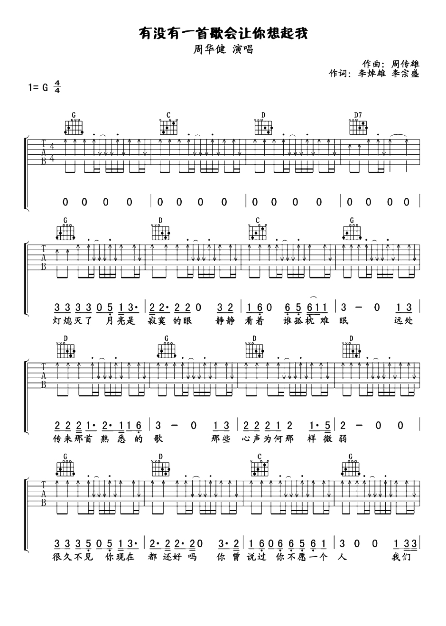有没有那么一首歌会让你想起我吉他谱 - 周华健 - G调吉他弹唱谱