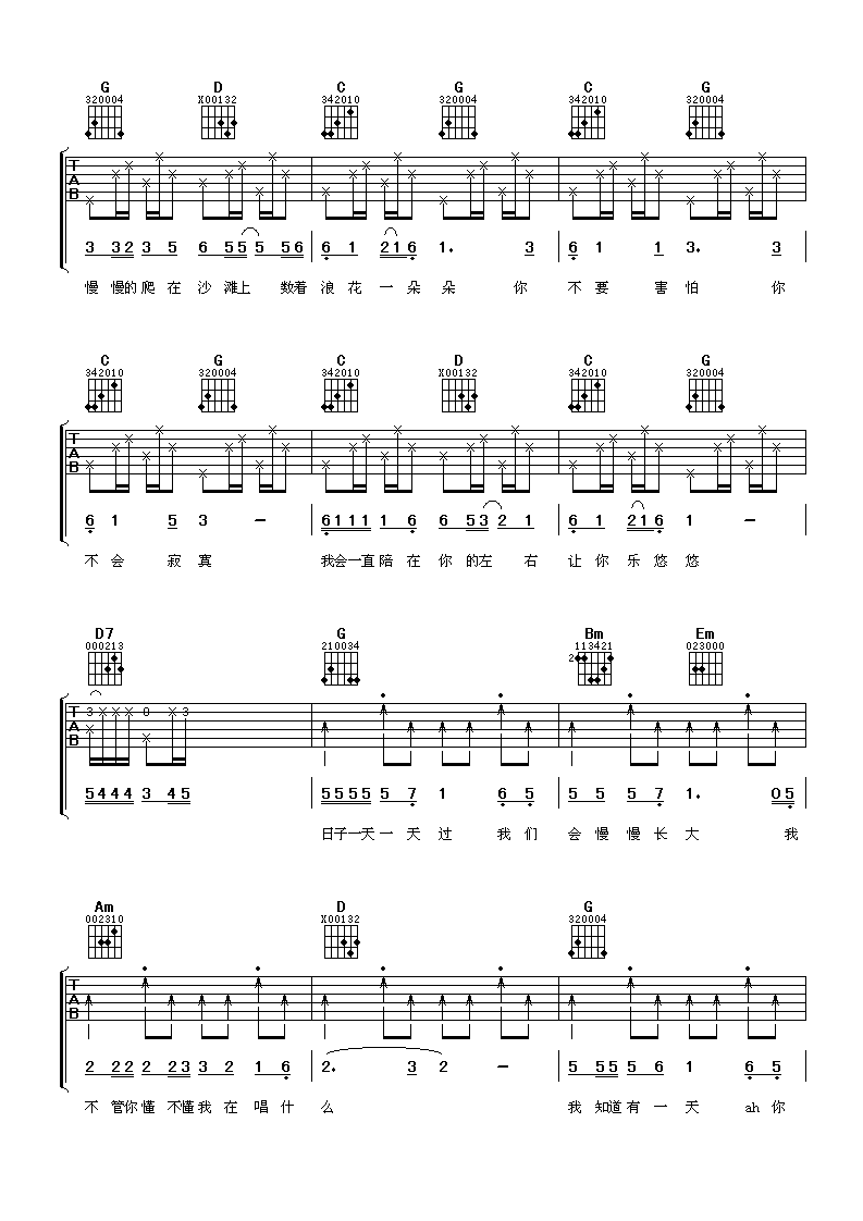 曲谱介绍: 任贤齐演唱的一首歌曲,4/4拍的节奏,这首歌曲的原调为G调,这里曲谱采用了G调指法进行编配,演唱时可不夹变调夹,曲谱由琴谱网更新上传,来源于@阿潘音乐工场编配出品。这首歌真的十分欢脱,听起来就很潇洒,这首歌的歌词和曲调特别的有趣,就好像在玩游戏一般,有一种郊游的感觉,特别适合在聚会的时候一起唱,感觉特别能够活跃气氛和氛围。