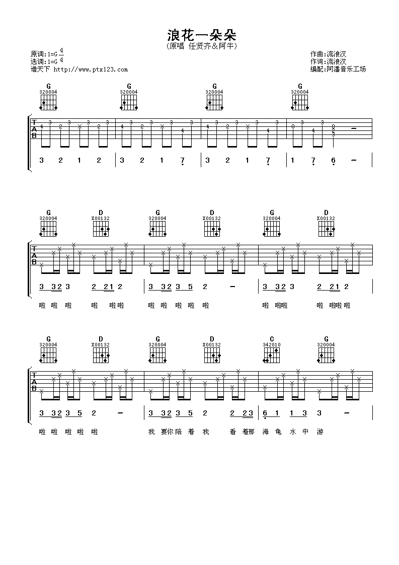 浪花一朵朵吉他谱 - 任贤齐 - G调吉他弹唱谱 - 原版