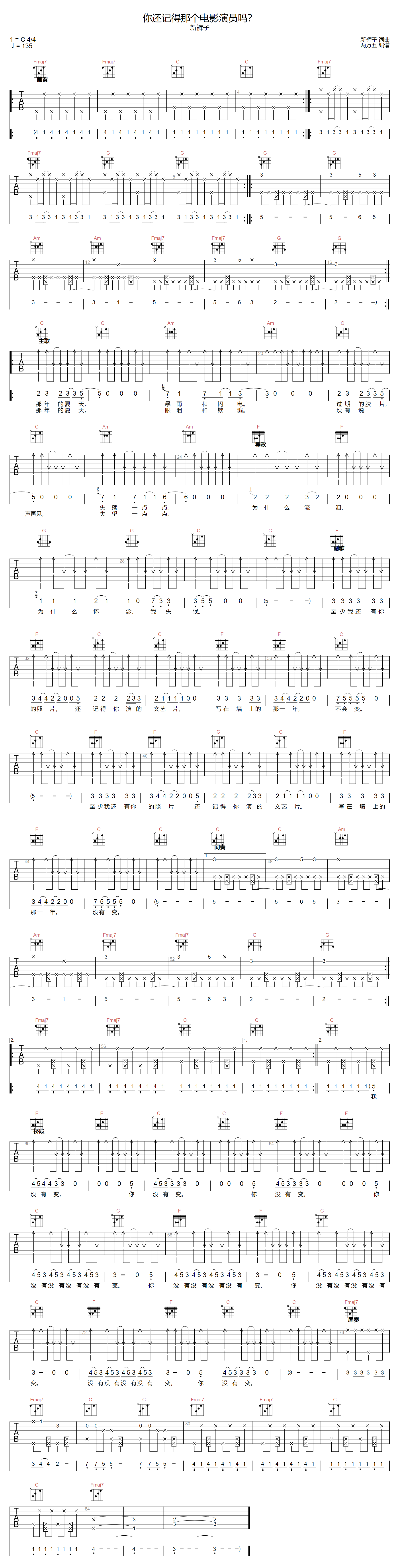 你还记得那个电影演员吗吉他谱 - 新裤子 - C调吉他弹唱谱