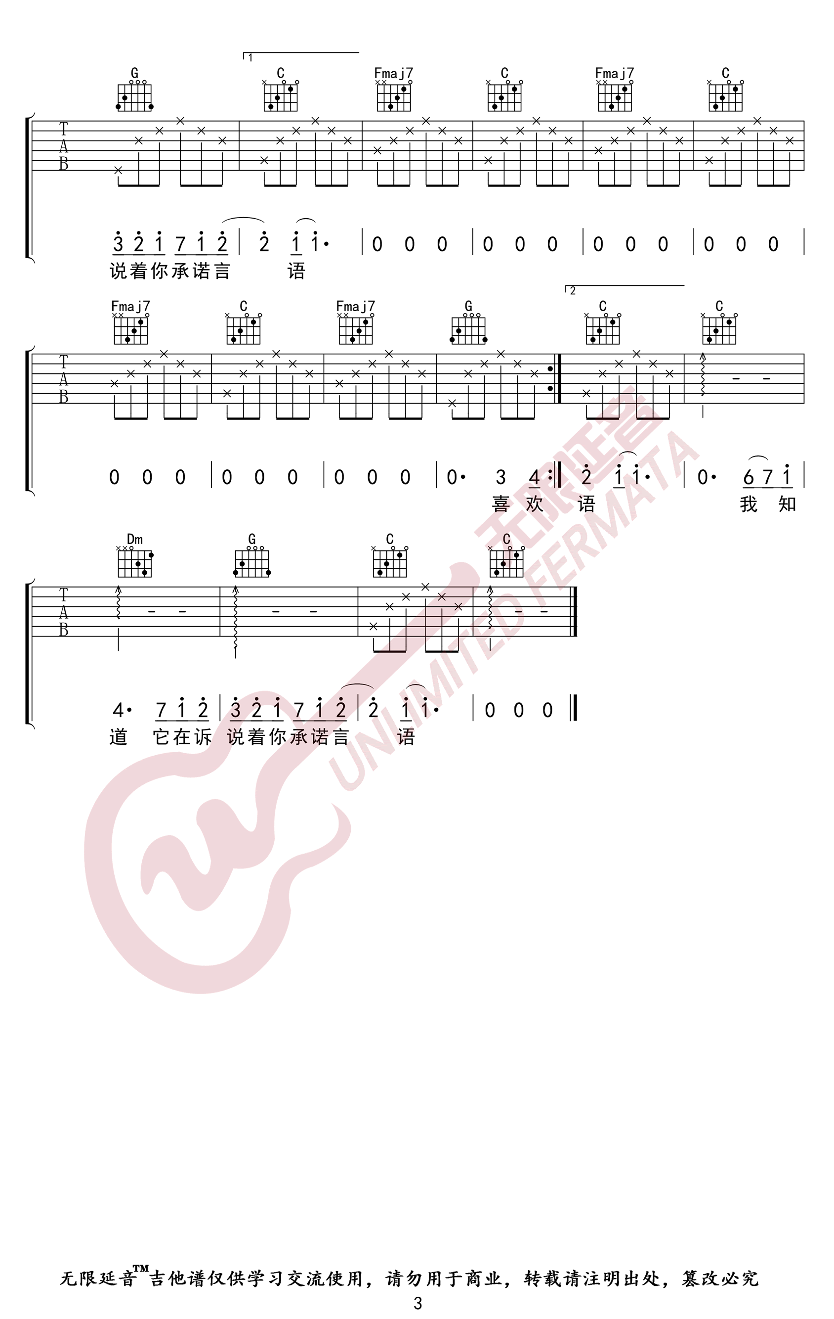 曲谱介绍: 陈洁仪演唱的一首歌曲,6/8拍的节奏,这首歌曲的原调为#F调,这里曲谱采用了C调指法进行编配,演唱时夹变调夹6品可回到原调,也可根据个人实际嗓音情况选择。曲谱由琴谱网更新上传,来源于@无限延音编配出品。这首歌讲述了一个24岁的女孩在热恋期时候的恋爱情怀,整首歌都表现的甜蜜、温婉而不失细腻。