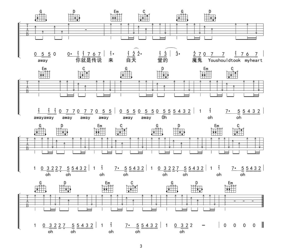 当前位置:琴谱网>吉他弹唱>来自天堂的魔鬼