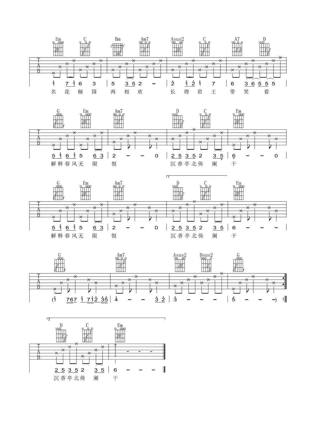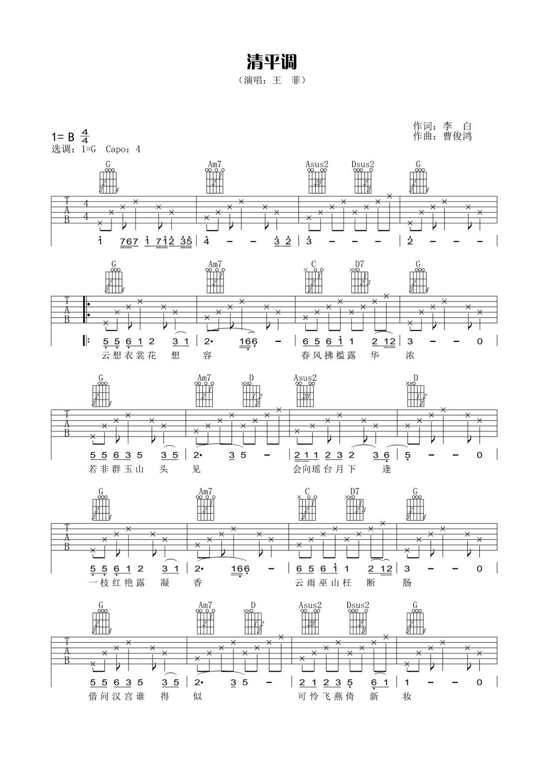 清平调吉他谱 - 王菲 - 吉他弹唱谱 - 原版