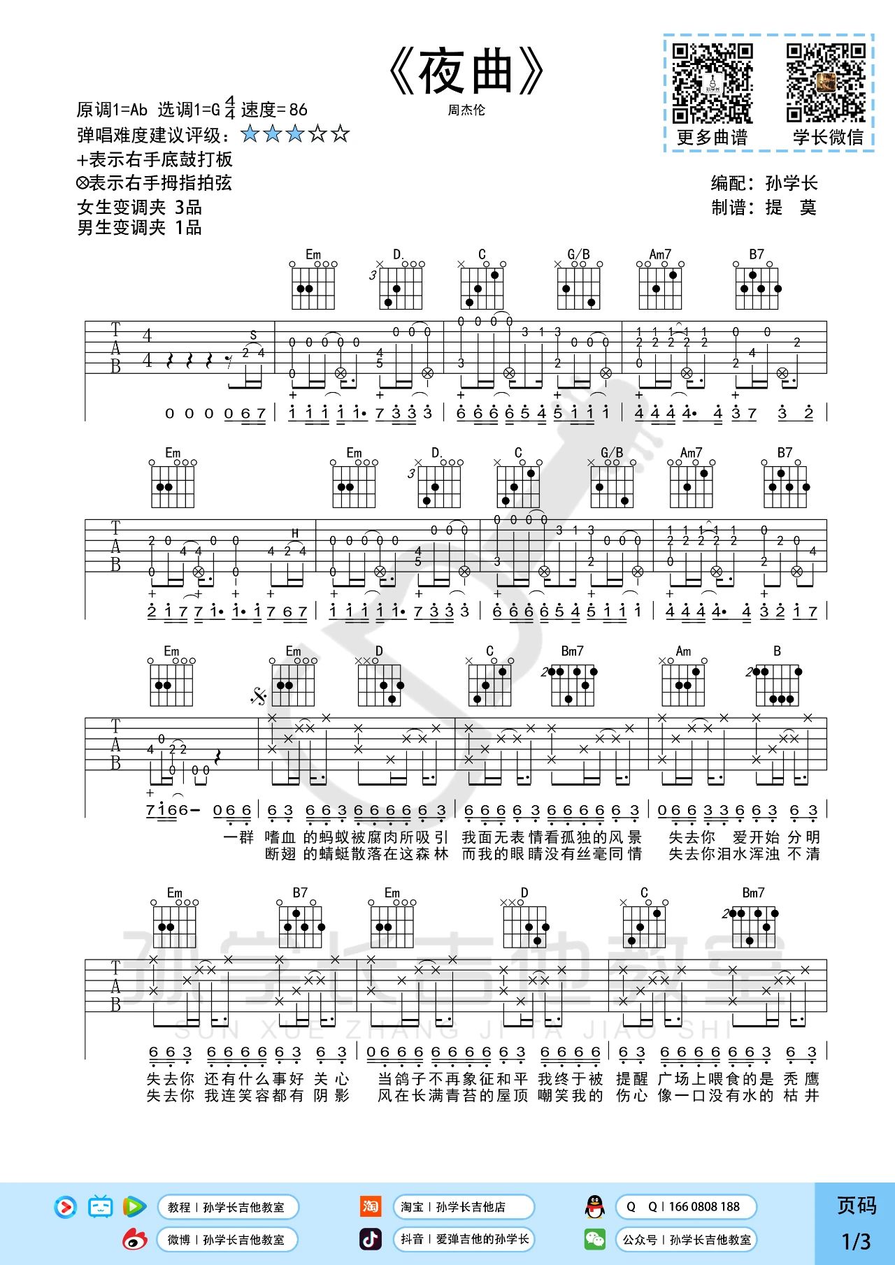 琴谱网为您精心推荐 夜曲 高清图谱