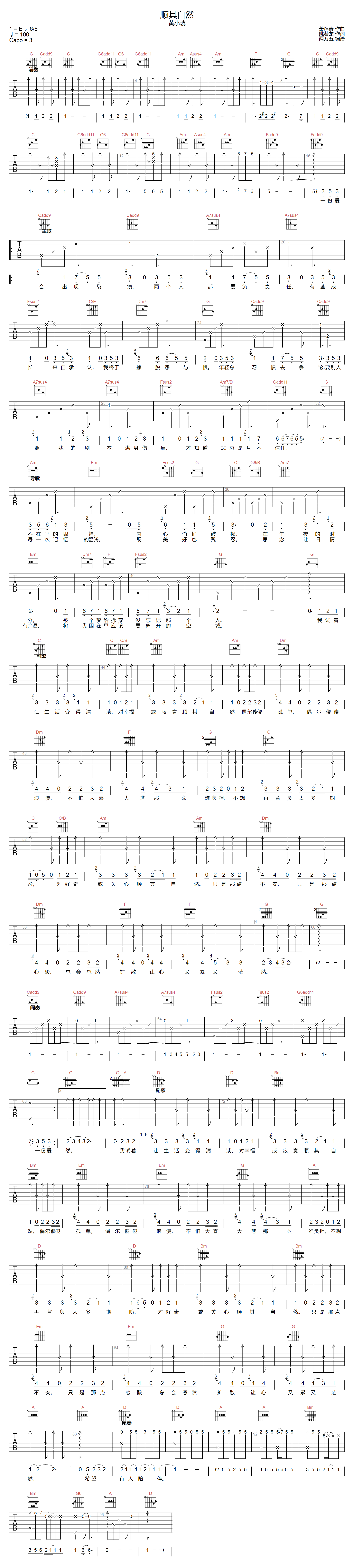 顺其自然吉他谱 - 黄小琥 - C调吉他弹唱谱 - 原版