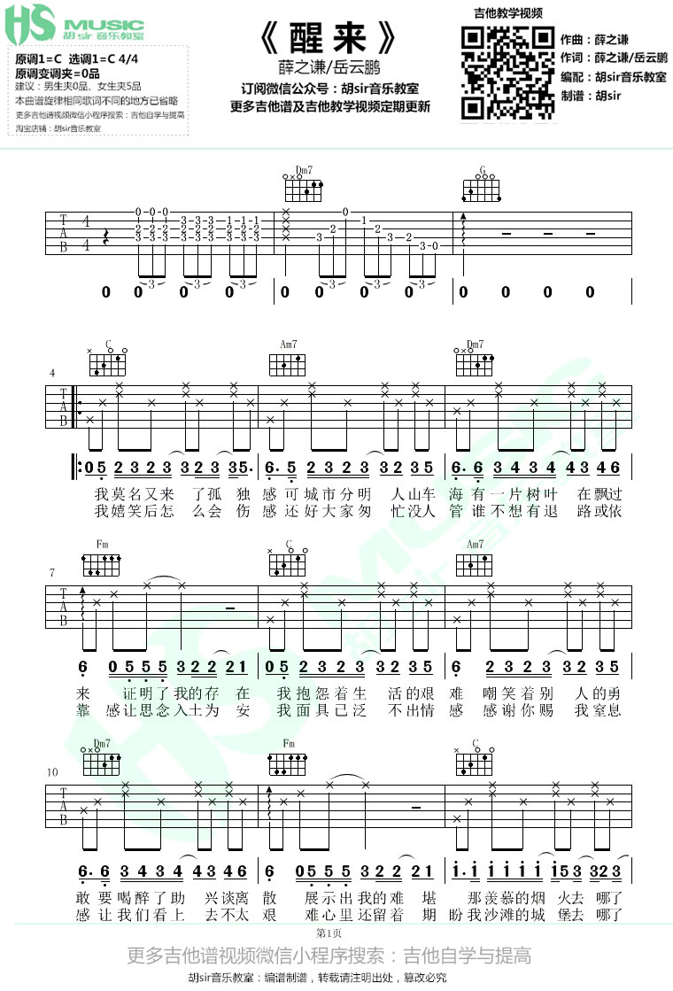 醒来吉他谱 - 薛之谦/岳云鹏 - C调吉他弹唱谱 - 原版