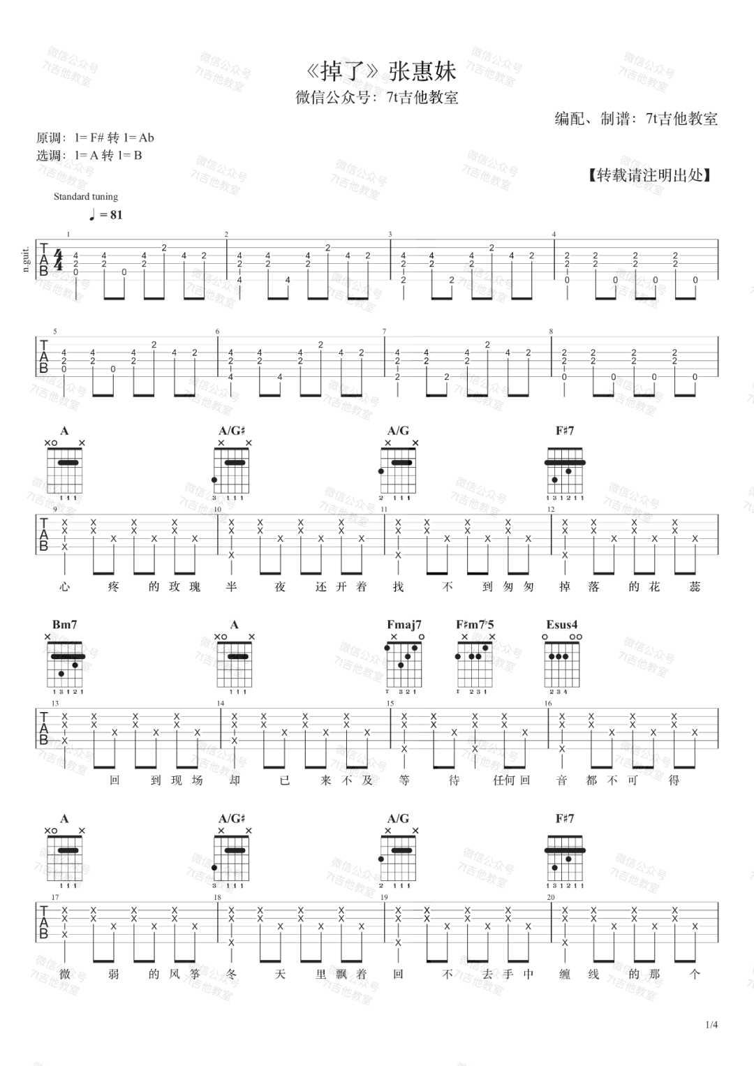 当前位置:琴谱网>吉他弹唱>掉了