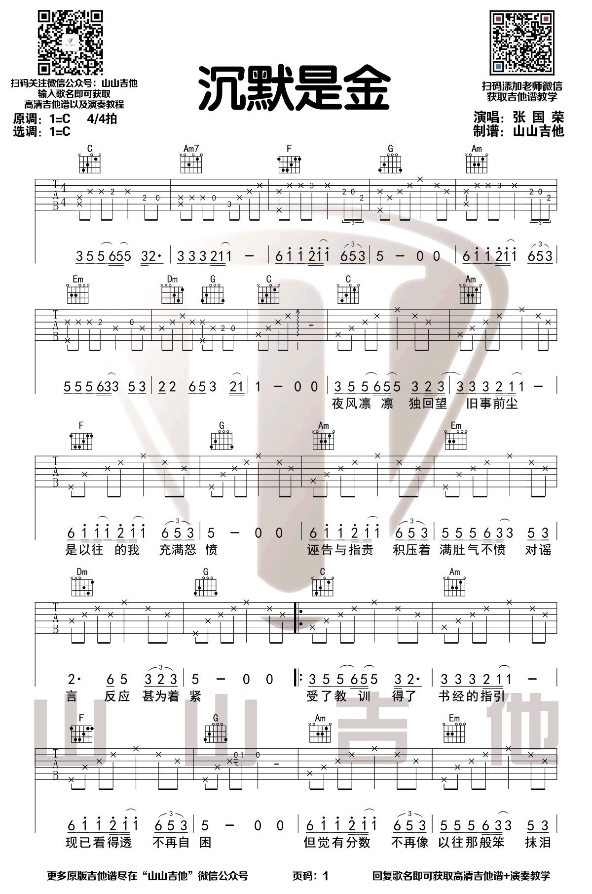 当前位置:琴谱网>吉他弹唱>沉默是金